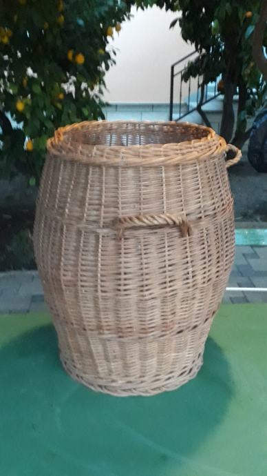 Velika starinska korpa za veš u odličnom stanju dimenzije visina 58 cm širina 56cm otvor 36cm cjena 80kn