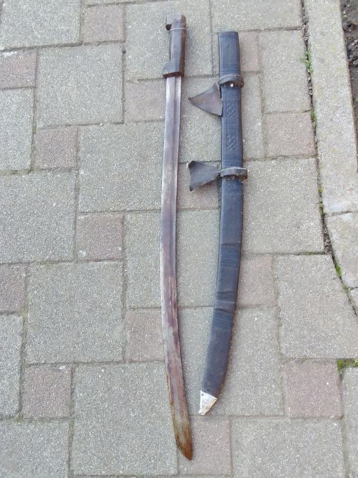 Prekrasna velika Indijska mačeta,dužina sa kožnim tokom je 95cm,duljina samog sječiva je 75cm,duljina sječiva i drške 88cm,,pogledajte moje ostale oglase starina i antikviteta gdje ima još bodeža i sablji,samo imate oglase starina možete ponuditi zamjene