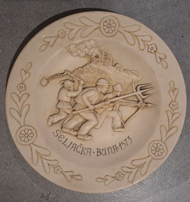 VELIKI TEŠKI DEKORATIVNI TANJUR OD ALABASTERA "SELJAČKA BUNA"-ITALY