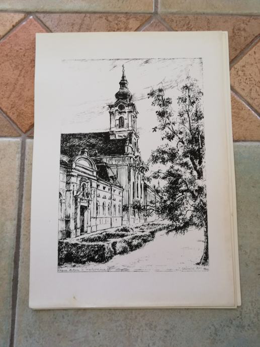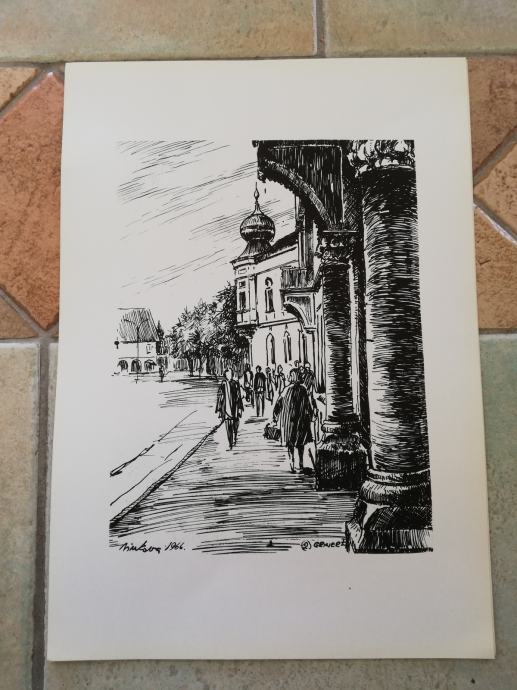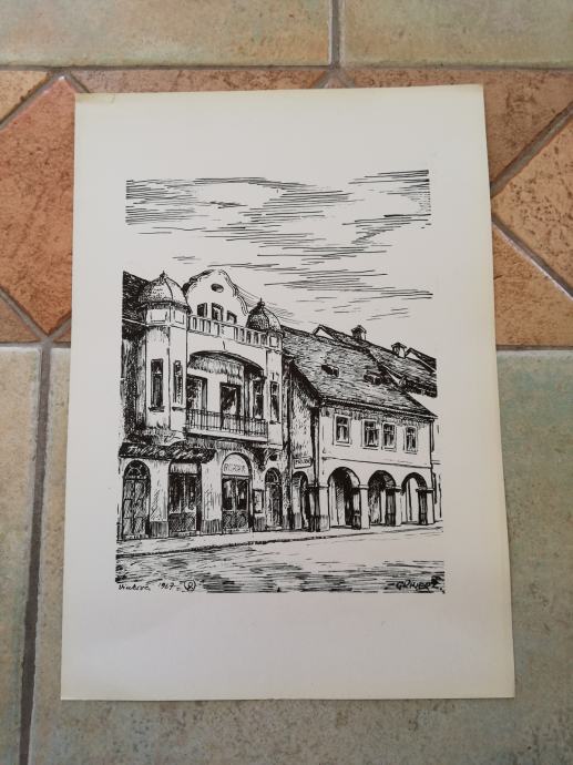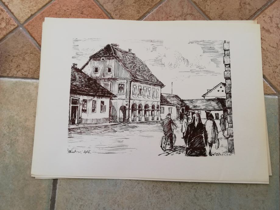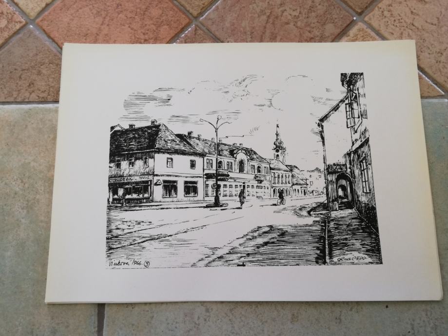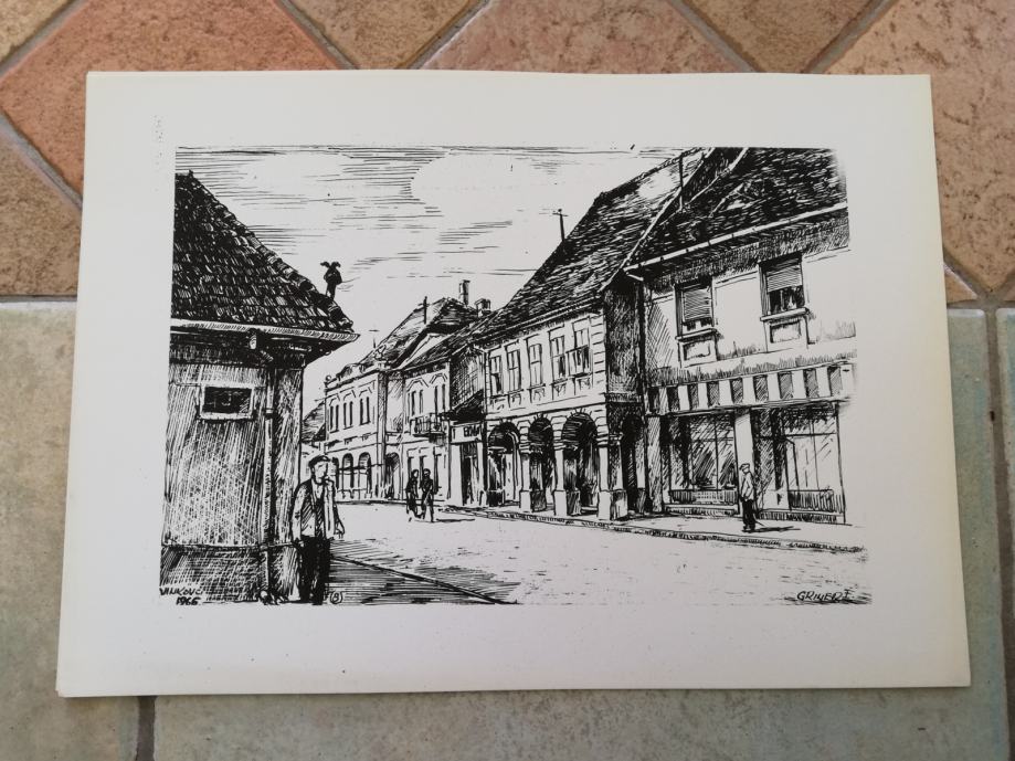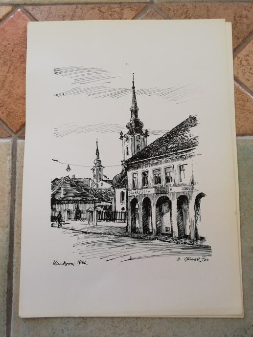 Lot od 8 pero crteža E. Grinera sa motivima Vinkovaca, očuvano, iz privatne kolekcije.