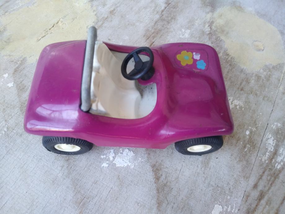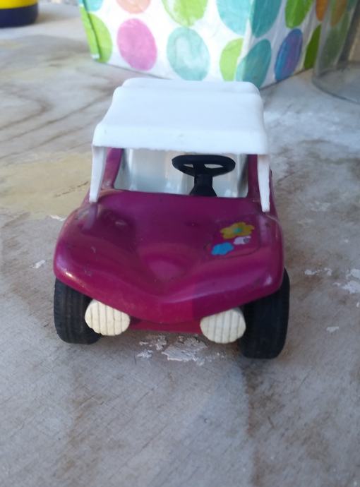 Metalno kuciste. Plasticna unutrasnjost i krov. Krov se da skinuti. Gumeni volan i kotaci (gume). Ocuvan.