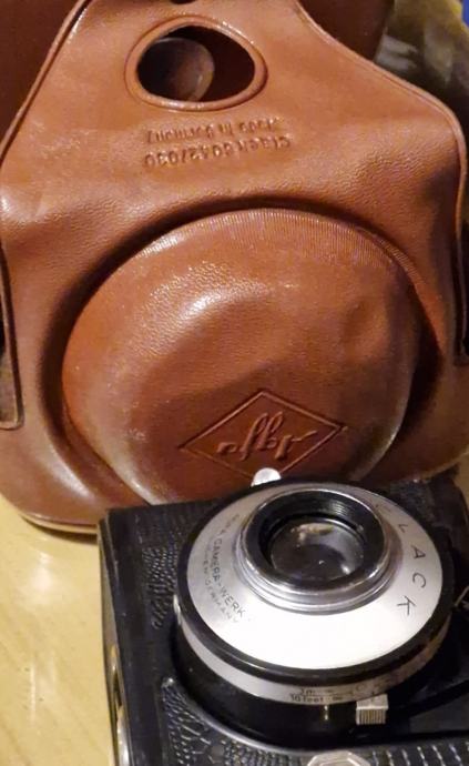 Starinski Agfa Clack fotoaparat Lijep stari fotoaparat u dobrom stanju - Afga CLACK 6042/030 s originalnom torbom tvrtke Agfa Camera-Werk AG. Proizvedeno u Njemačkoj. Stanje: rabljeno". Sa znakovima korištenja povezanim sa starenjem. Stanje možete vidjeti na priloženim slikama.