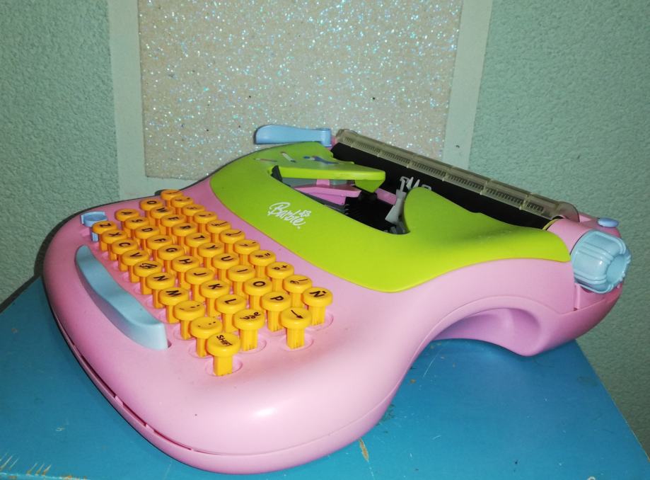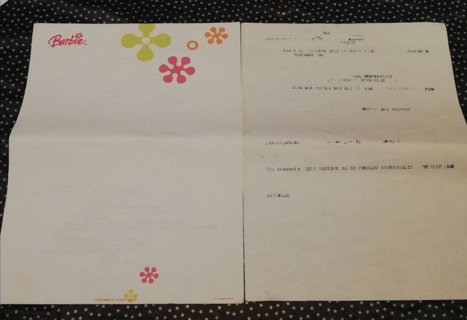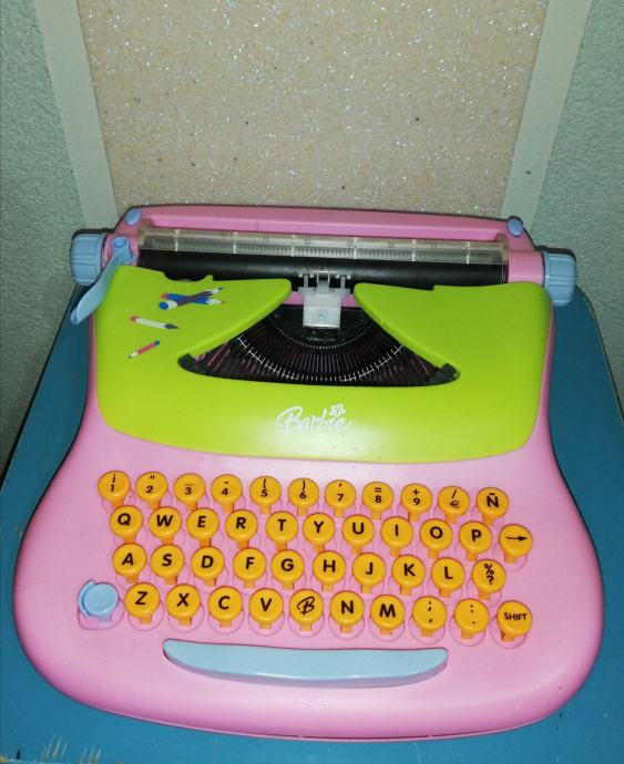 Vintage Barbie pisaći stroj, ograničena serija. Za kolekcionare Barbie predmeta. U originalnoj kutiji, sa uputama za upotrebu, te papirima za vježbanje pisanja.Izrađena po licenci u Sloveniji marke Mehano iz 1990-tih.