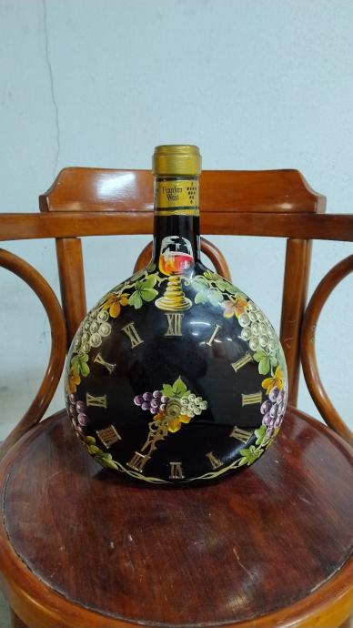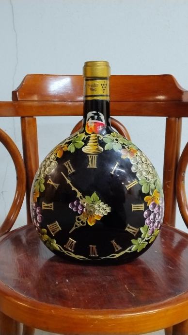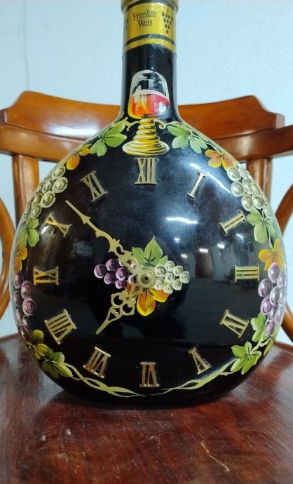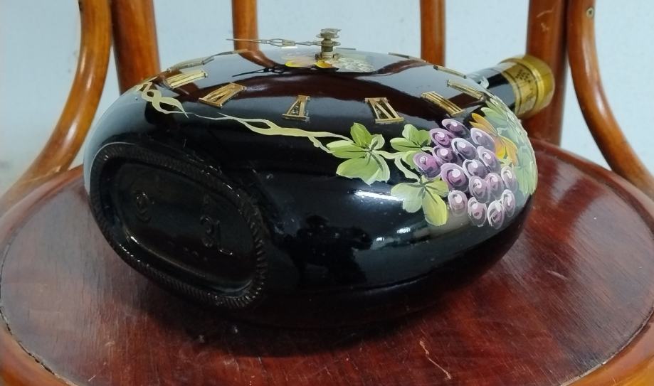 Vintage keramička boca-sat ,sa prekrasnom dekoracijom, iz 1970.-tih godina, podrijetlo:Njemačka, visina 34 cm, širina 24 cm, dubina 11,5 cm, izuzetno dobro sačuvan, u funkciji.