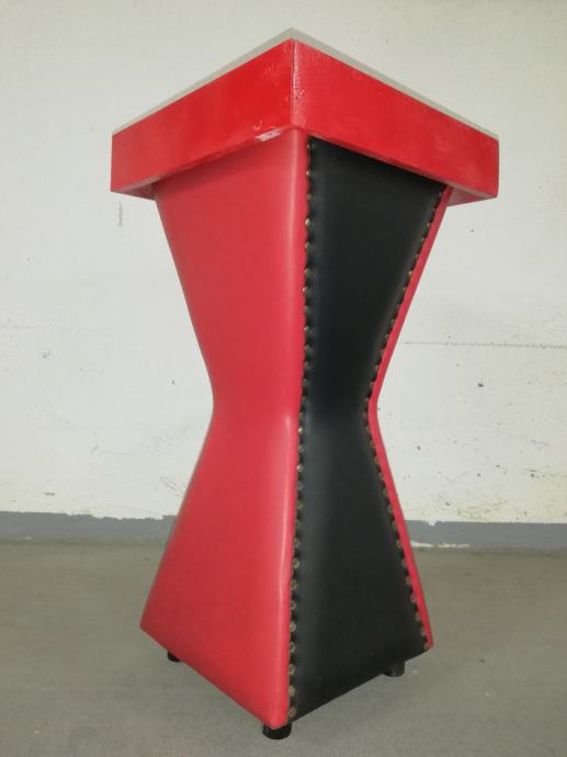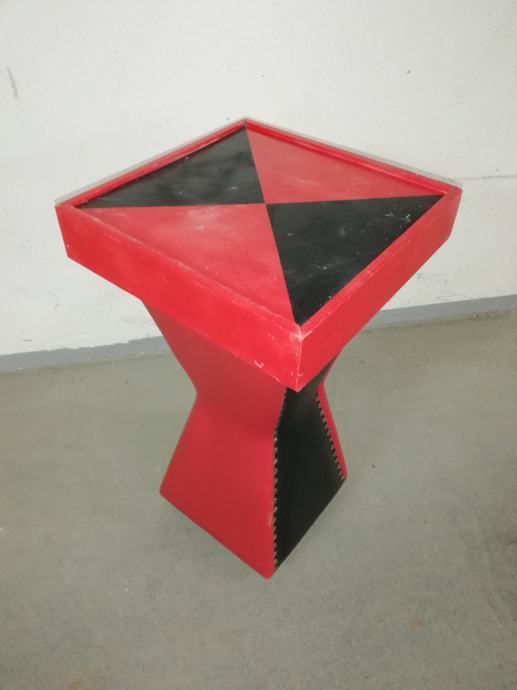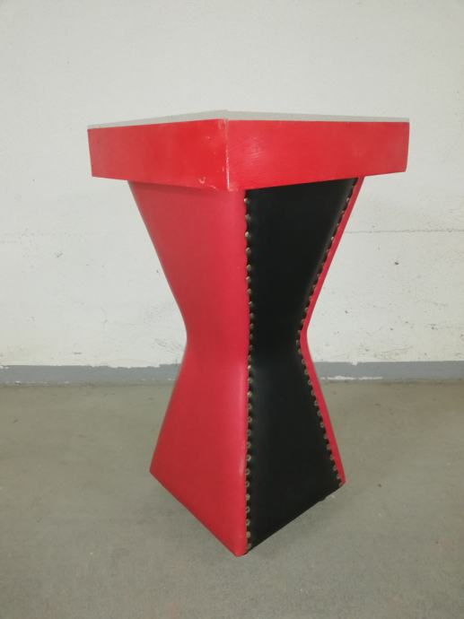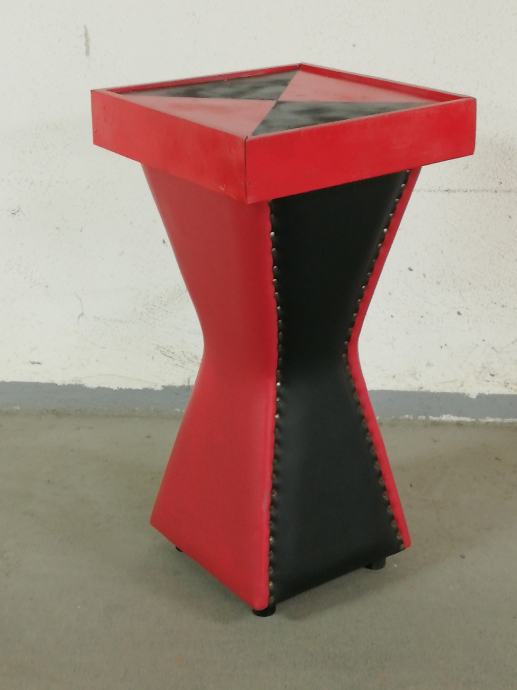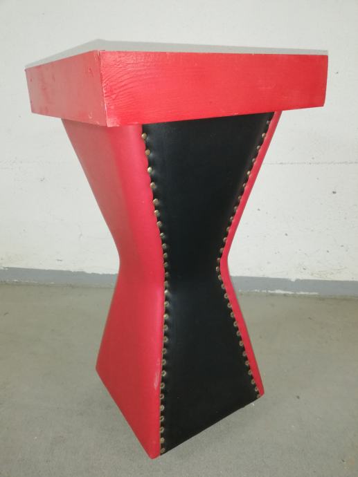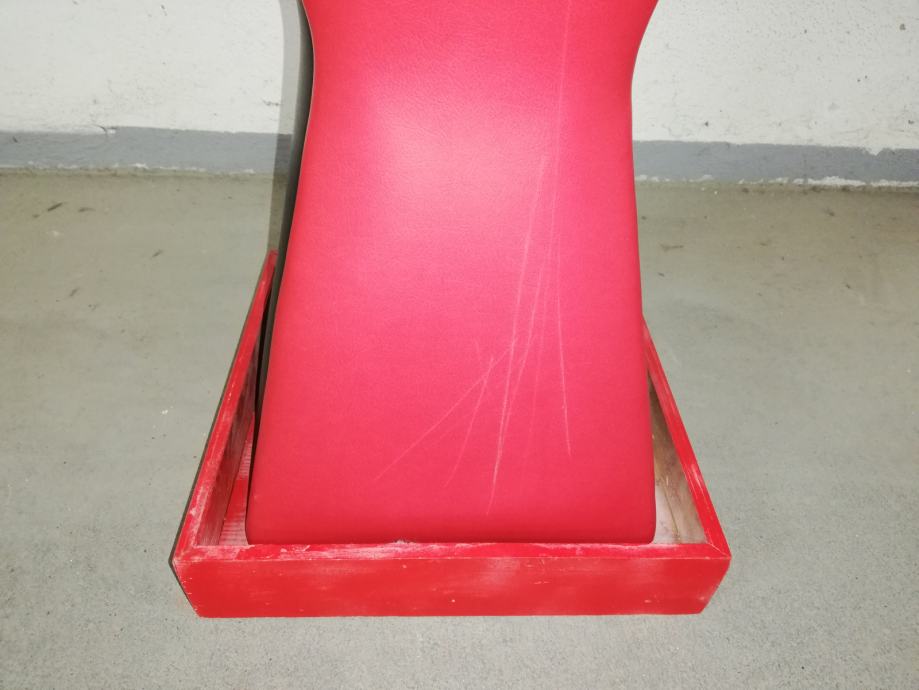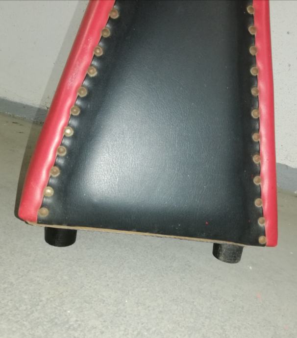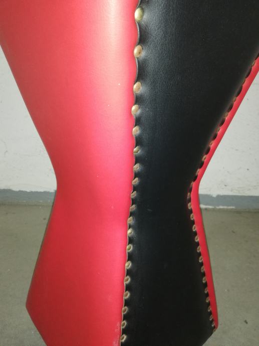 Vintage caffe stolić iz 1960-ih godina, materijal puno drvo, prekrivenom kožom, crne i crvene boje.