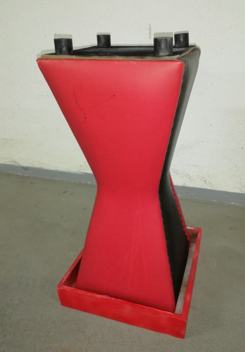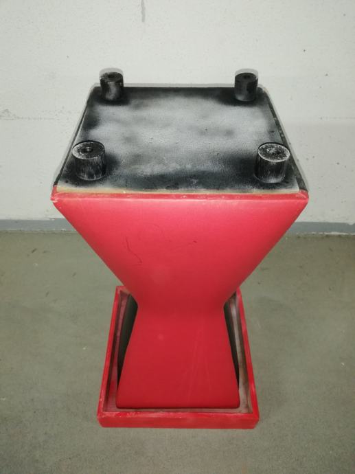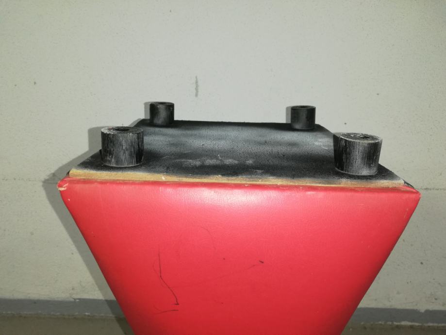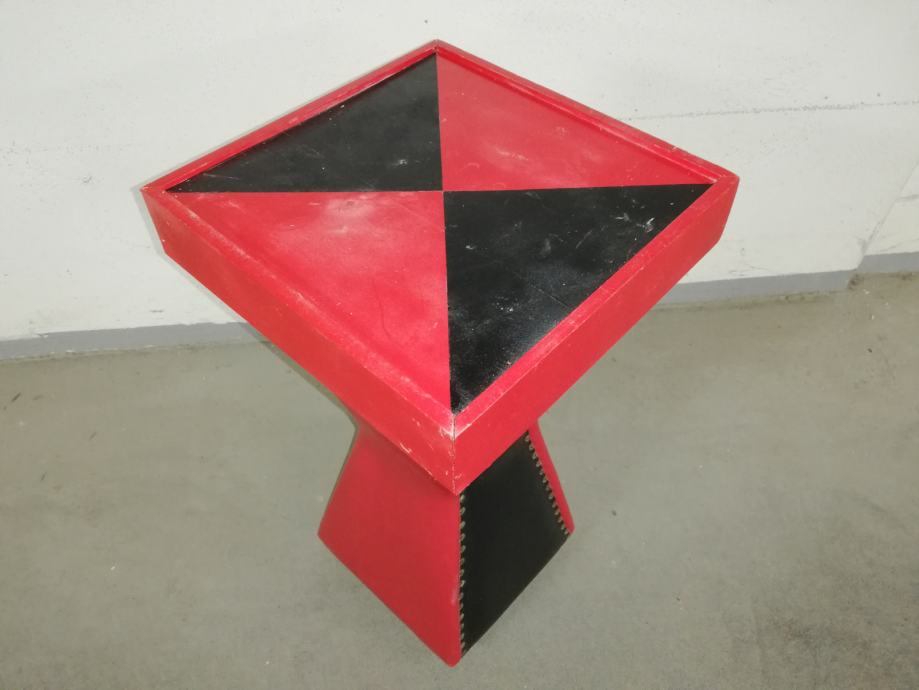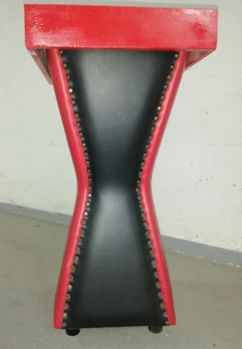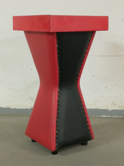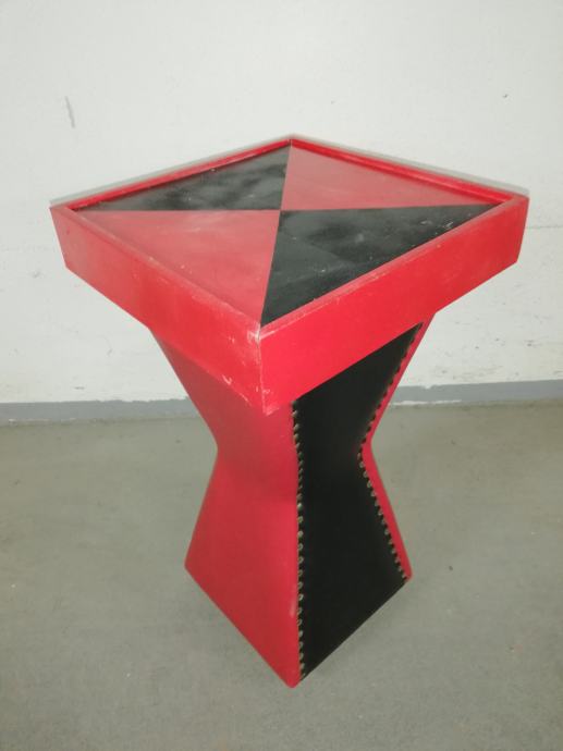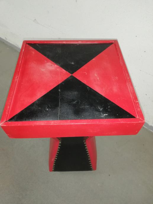Vintage caffe stolić iz 1960-ih godina, materijal puno drvo, prekrivenom kožom, crne i crvene boje.