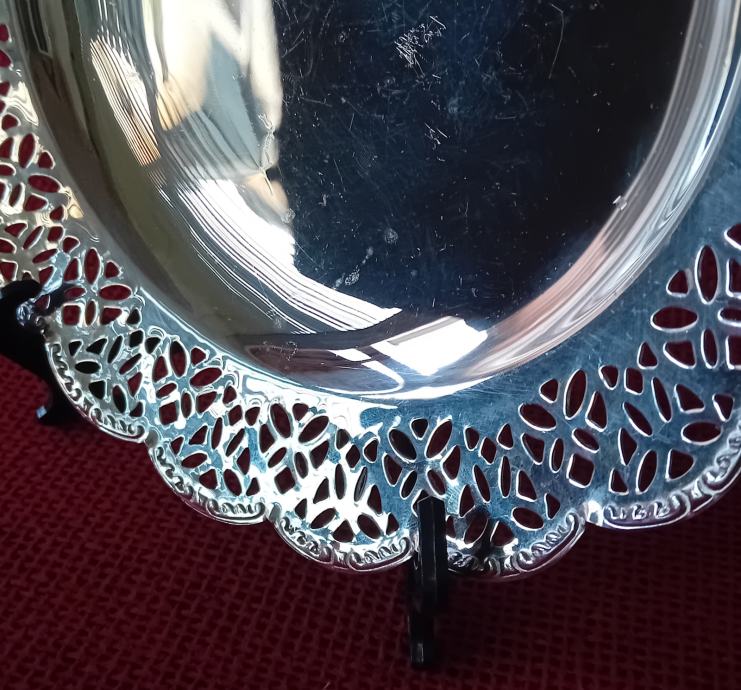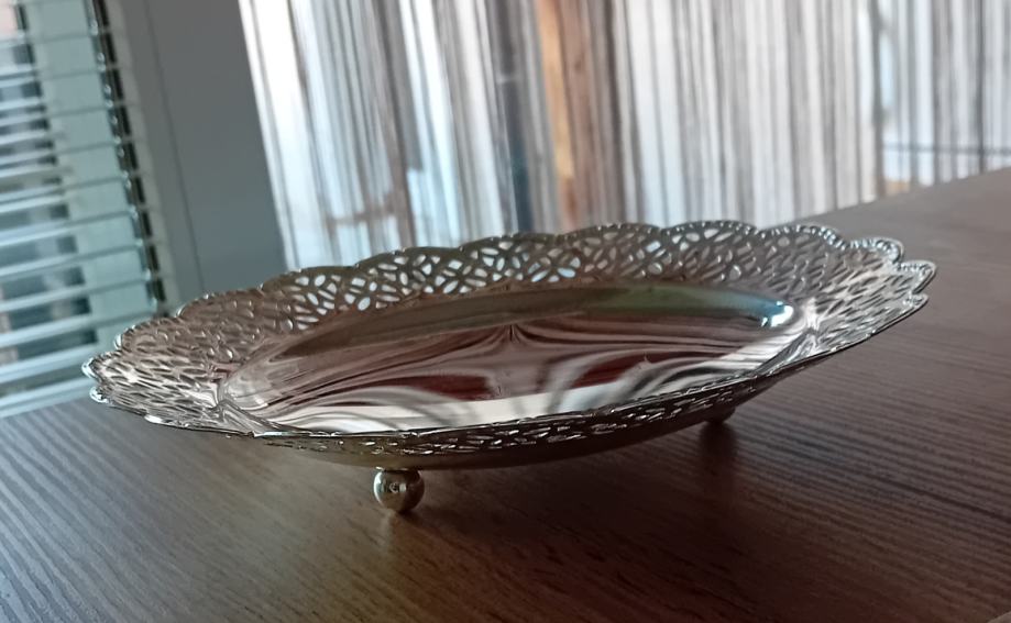 - dekorativna, sa vintage štihom i profinjenim, perforiranim rubom i tri decentne nogice koje podižu cijeli komad iznad podloge.