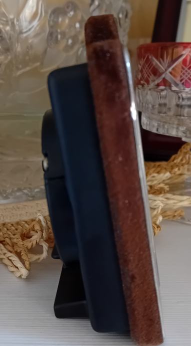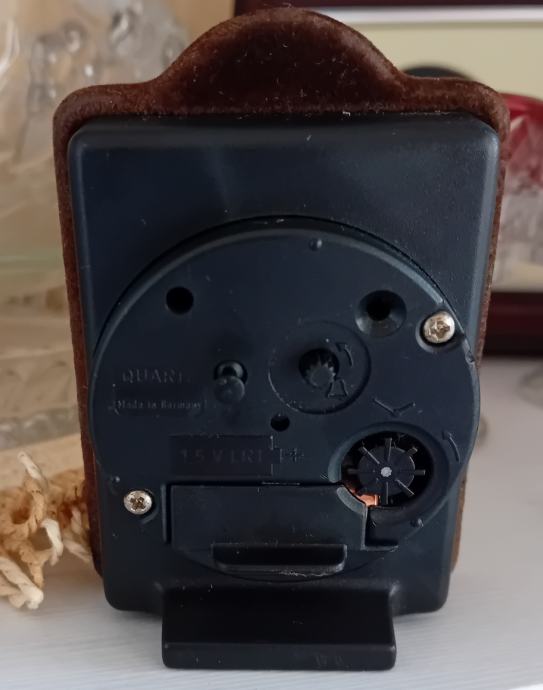 - sat je dimenzija 9,5x6,5 cm, rubovima obložen smeđim baršunastim materijalom