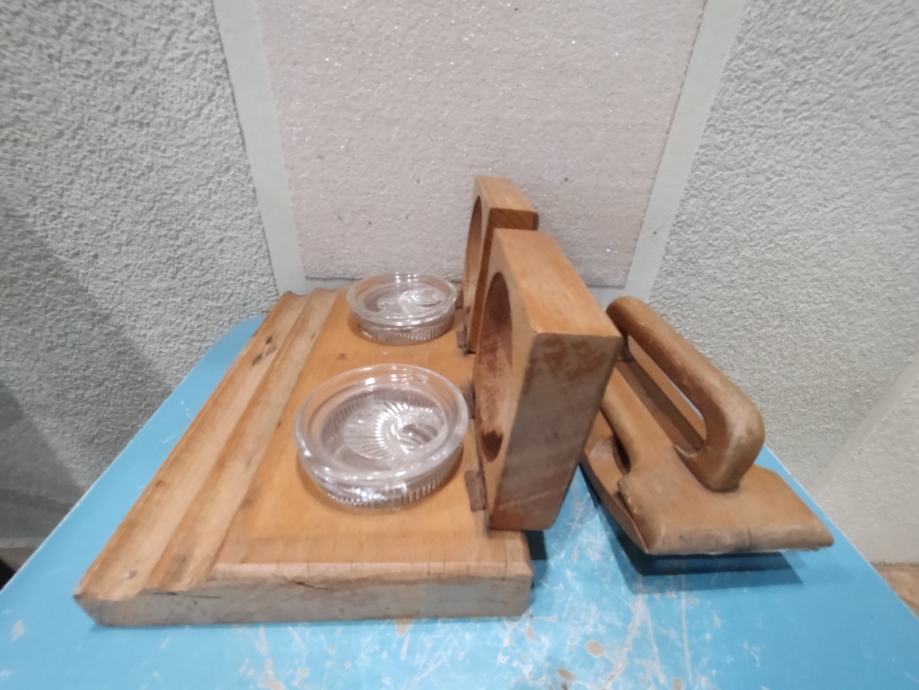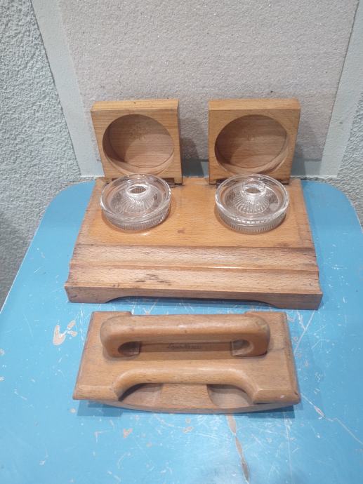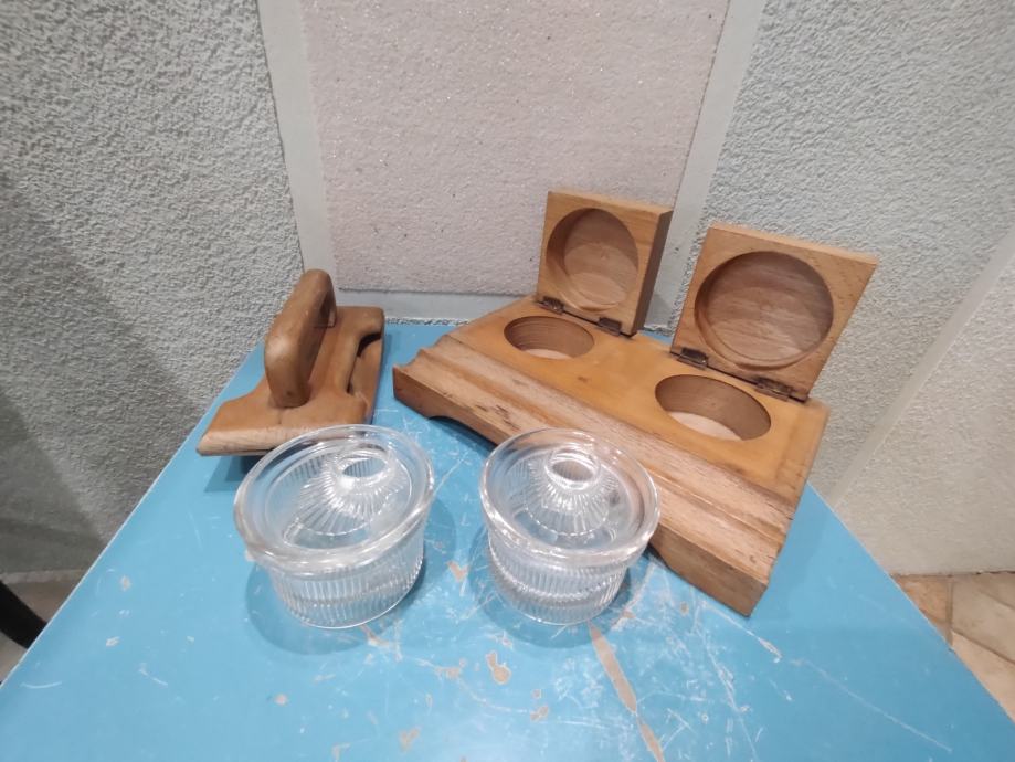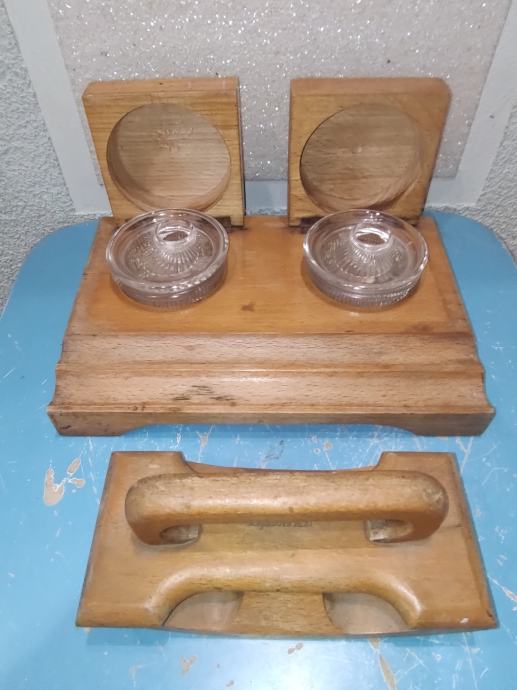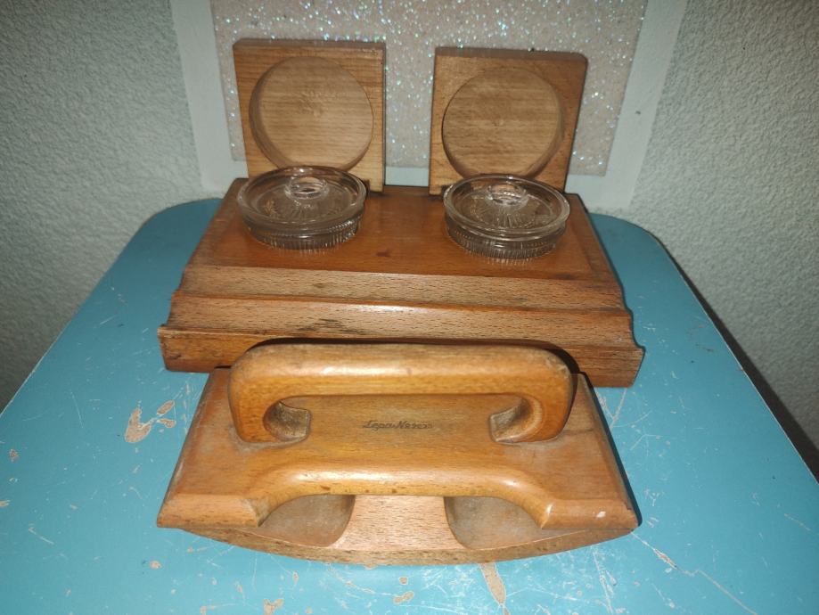 Vintage drvena tintarnica s pripadajućim upijačem tinte, Jela., Zagreb