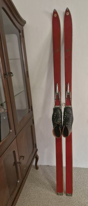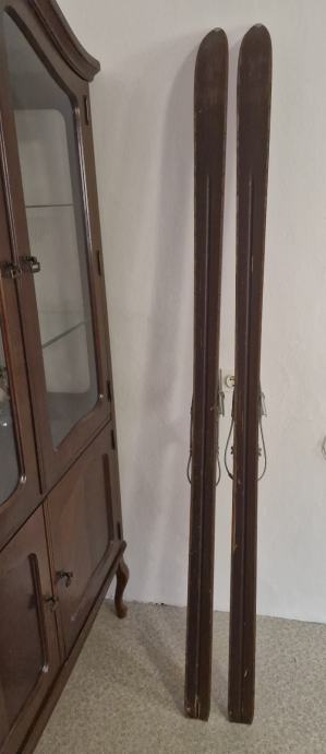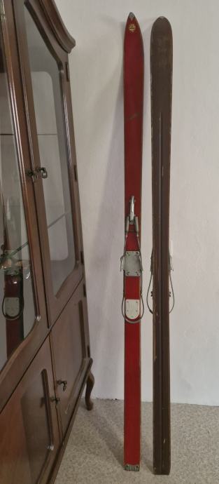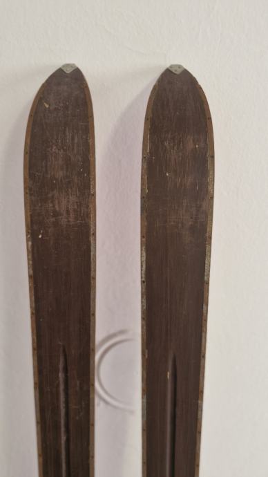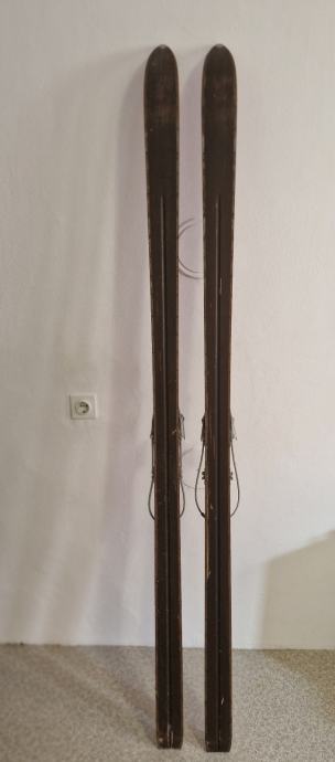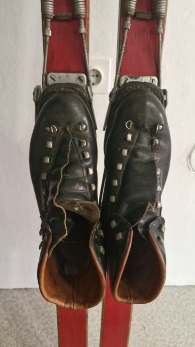 Prodajem ekstremno rijedak i potpuno originalan vintage skijaški komplet drvene skije sa ispravnim vezovima i kožnim pancericama iz 50-ih/60-ih godina, u iznenađujuće originalno očuvanom stanju: