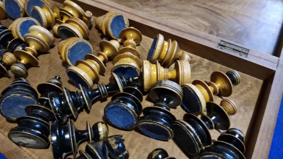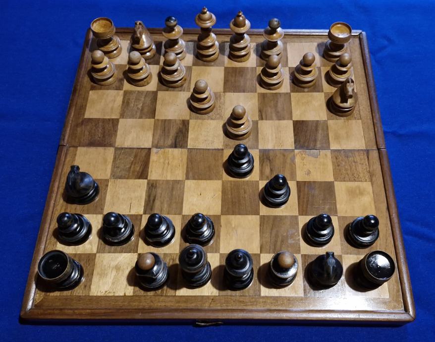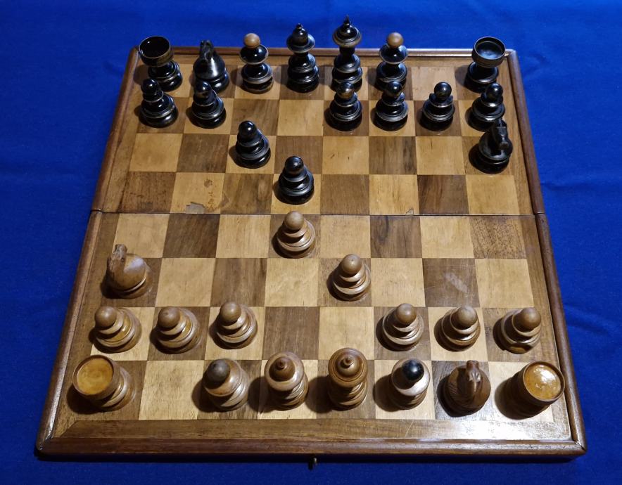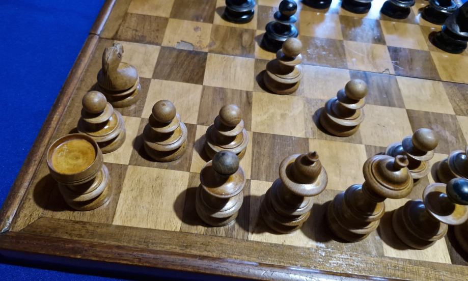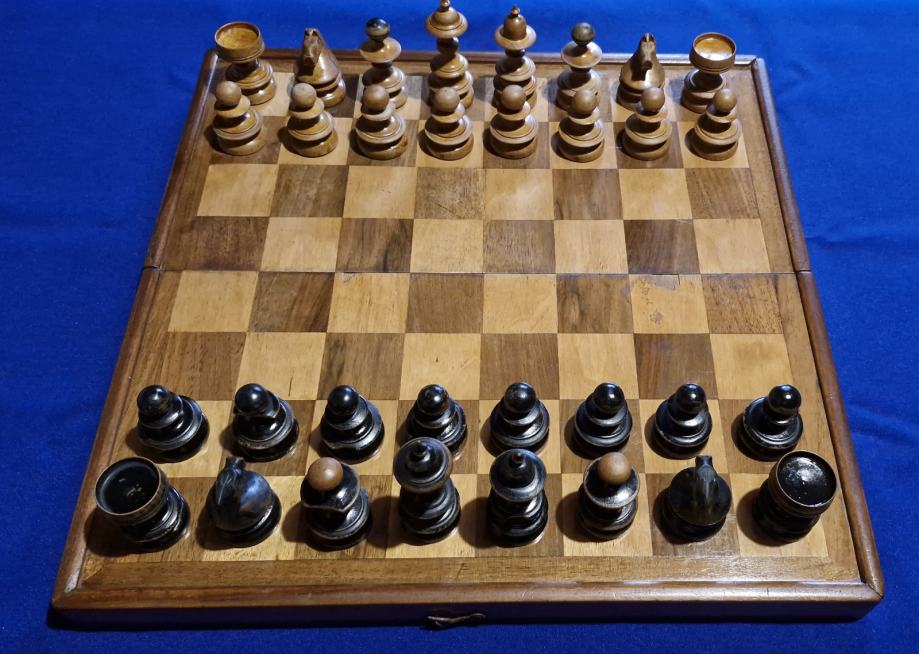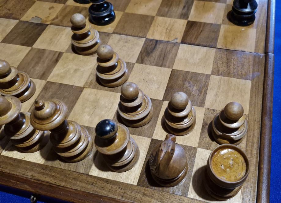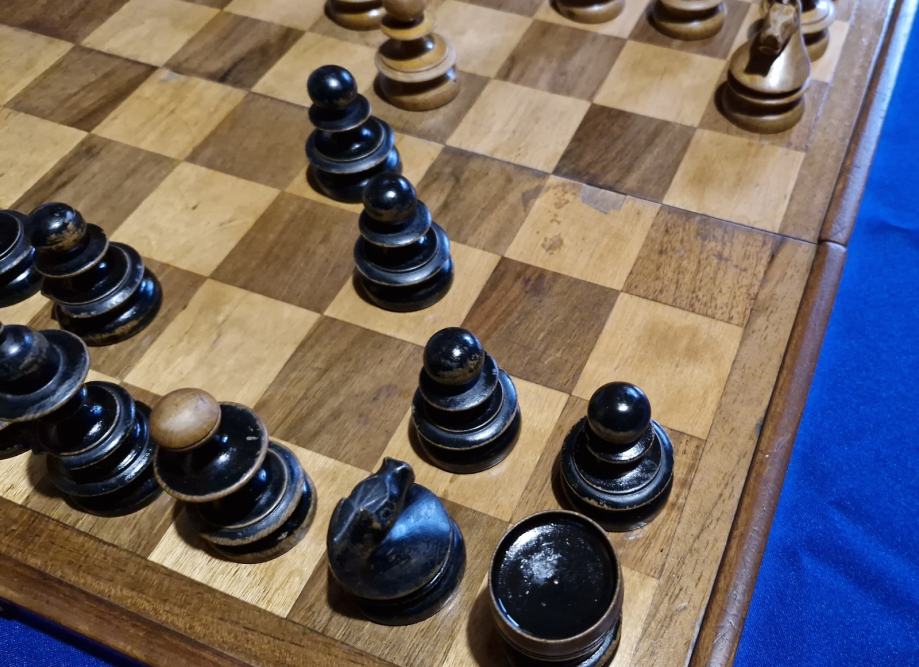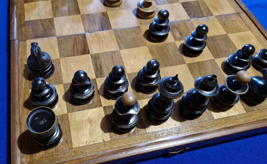 Prodajem izuzetno lijepo ručno izrađen jako stari (oko 50 godina) drveni šah sa 32 figure i pripadajućom šahovskom pločom.