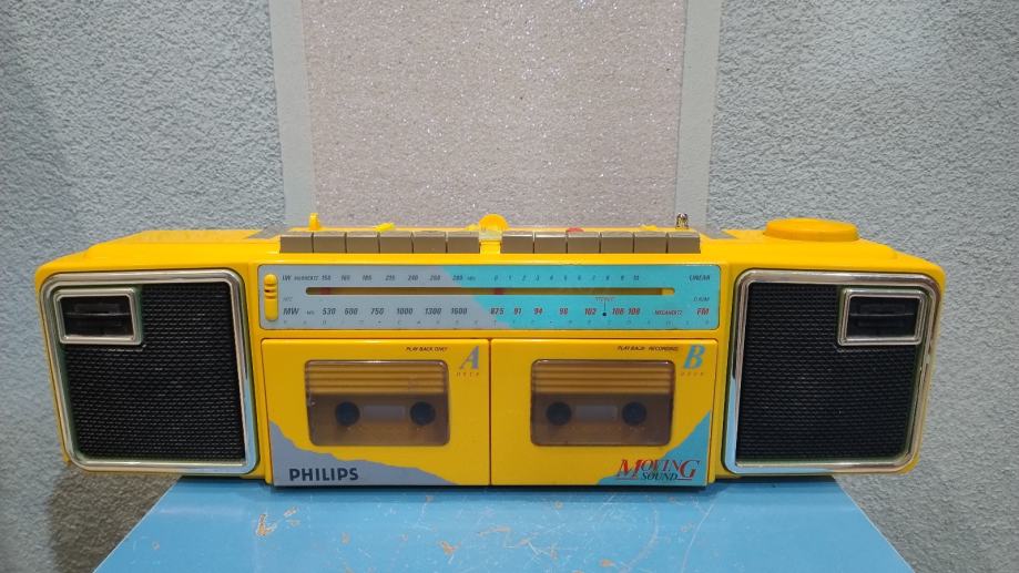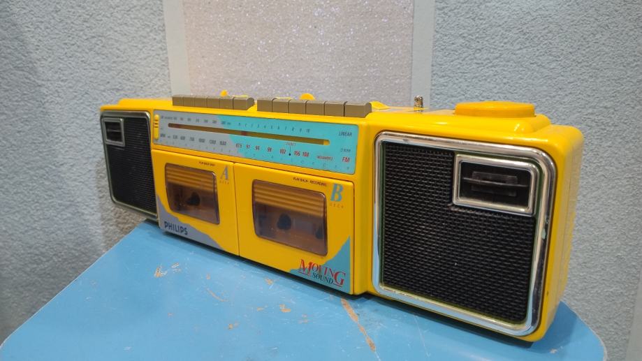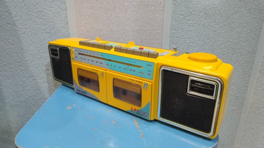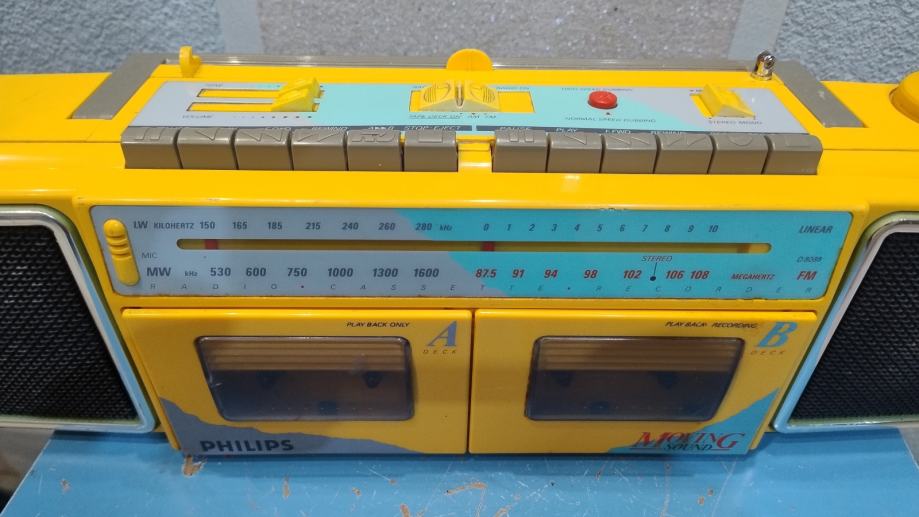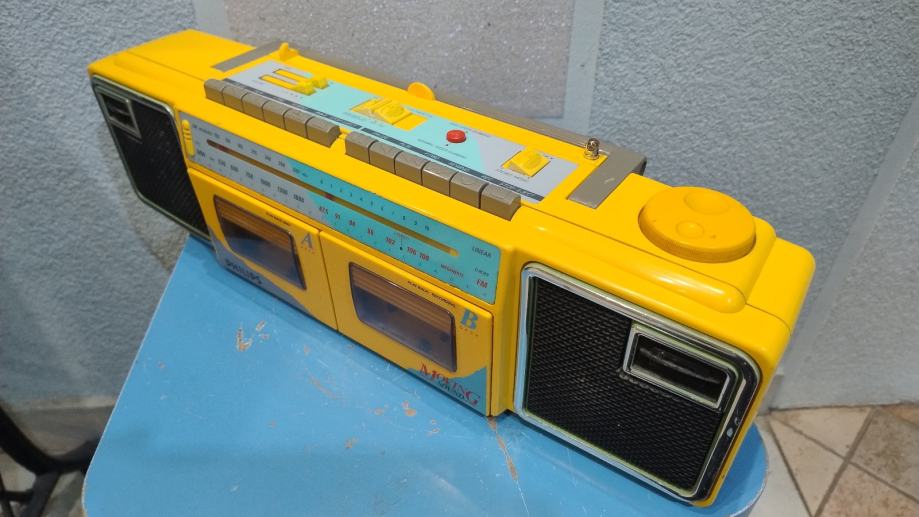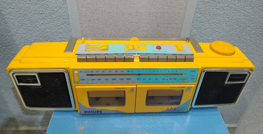 Vintage dvostruki kasetofon/radio Philips model D8088/OOS. Stil: Pop art uz 1980 -tih g. Proizvođač Philips Austrija.
