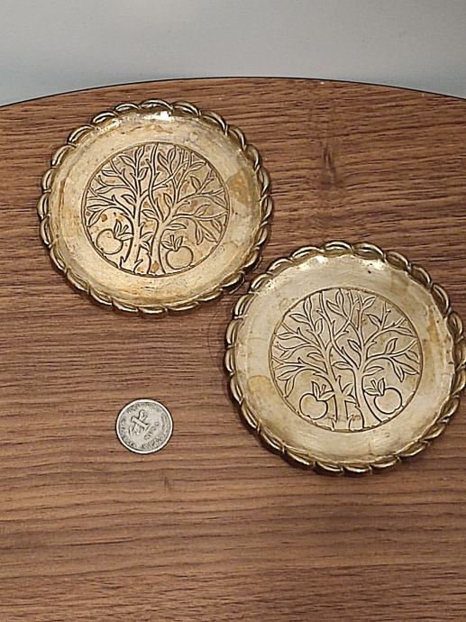 Vintage Gilde Hand Werk brass coasters with apple motif. Diameter 10 cm. Hard. The price is for two pieces. Possible handover near Kvaternikov trg..