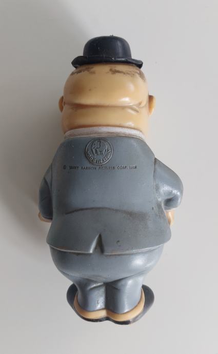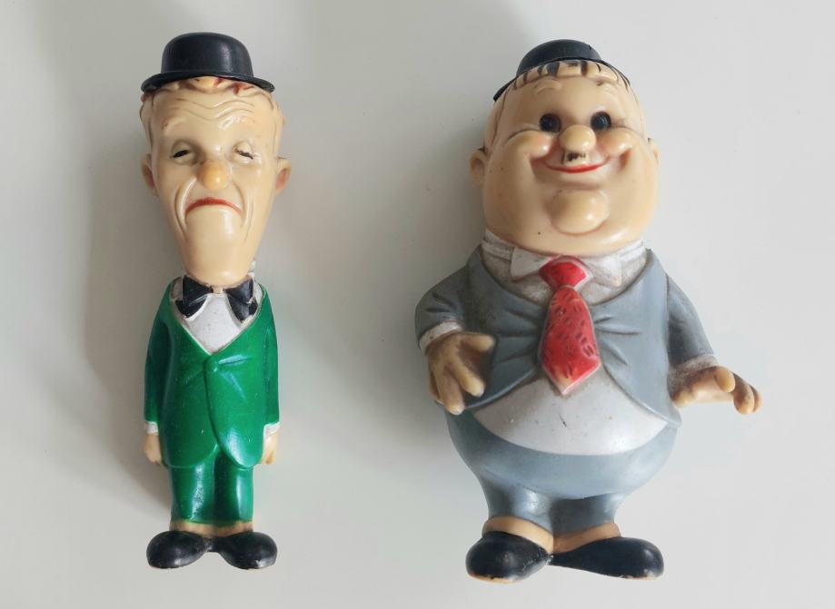Prodajem očuvane vintage gumene figure koja prikazuje lik Olivera Hardyja ("Olio) i lik Stana Laurela (Stanlio) proizvođača Ledraplastic talijanske tvrtke pod licencom Larryja Harmona Pictures Corp., a potjeće iz 1963. godine.