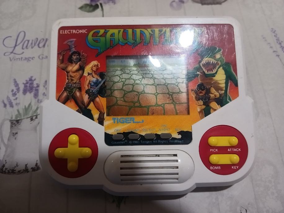 Prodajem vintage igraču konzolu Gauntlet iz 1988g. Igrica je neispravna u smislu, kad se stave baterije pojave se i brojevi u kutu gore i čovjek na displeju, cak i zvuk na tren ali ne reagira vise od toga. Plačanje na račun ili gotovina.