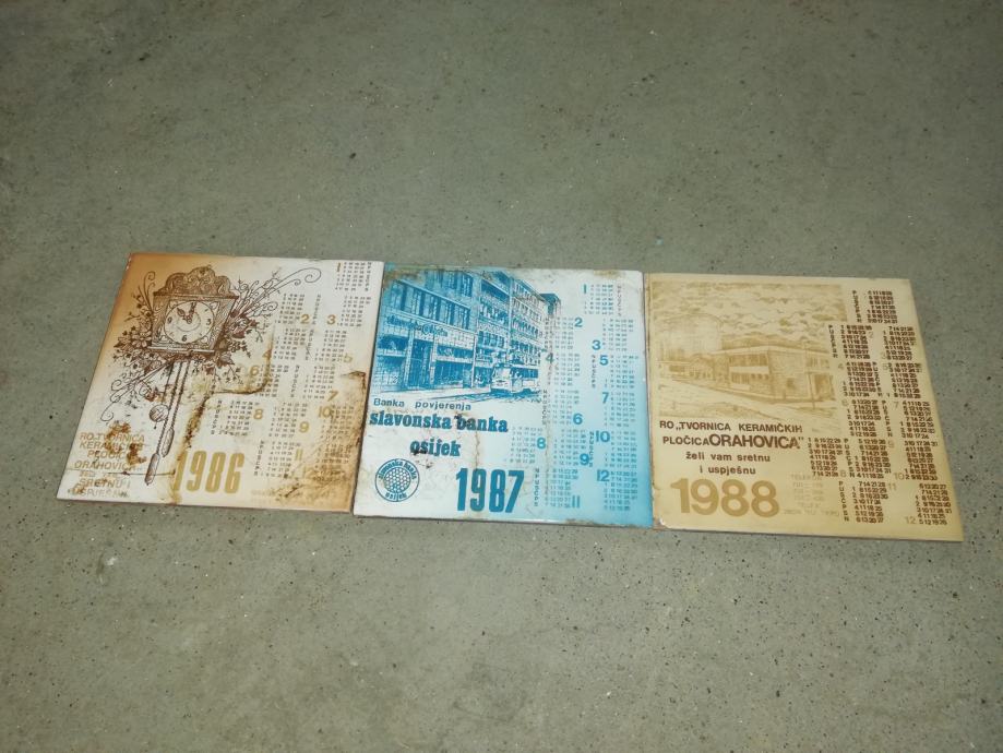 Vintage kalendari, lot od 3 keramičke pločice, proizvođač KIO, Orahovica, sa motivima: