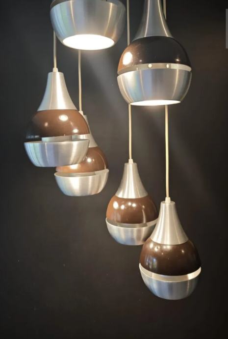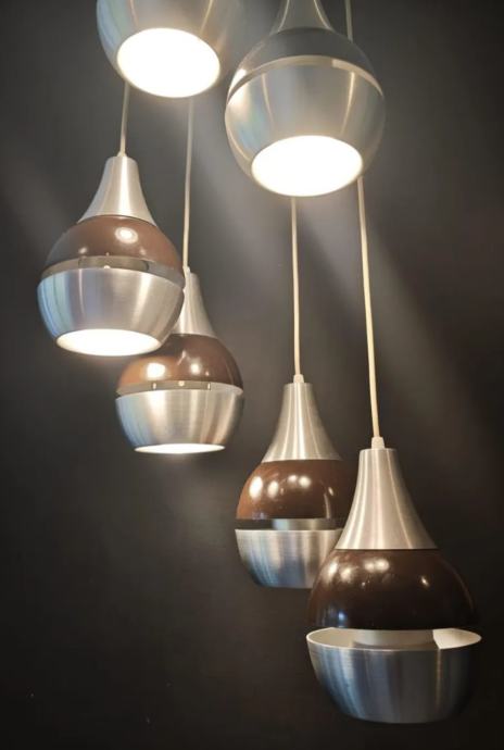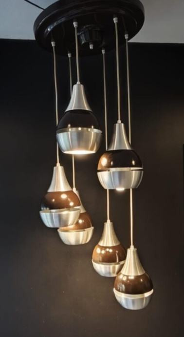 Vintage kaskadni luster u silu Space age iz 1970.-tih g. Proizvođač: Lebane, Jugoslavija.