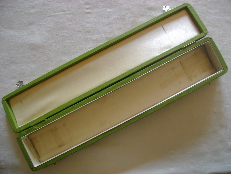 Vintage kutija za ogrlicu, dimenzije cca 6 x 31 x 3 cm, očuvana u skladu sa starošću, stanje je vidljivo na slikama.