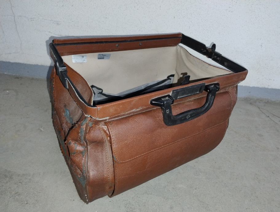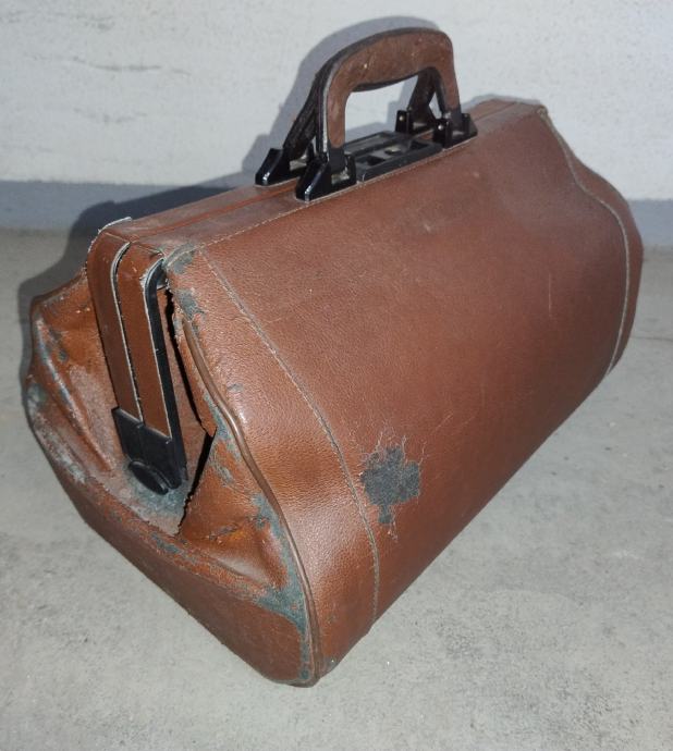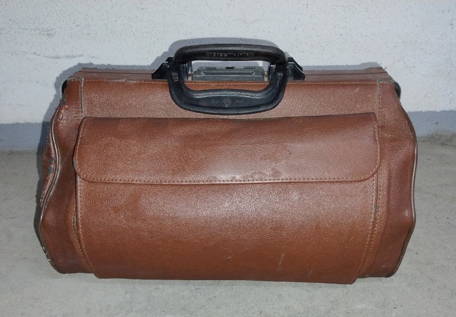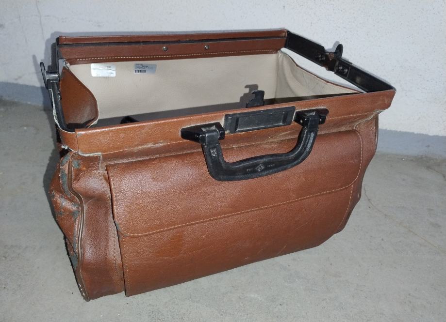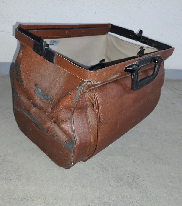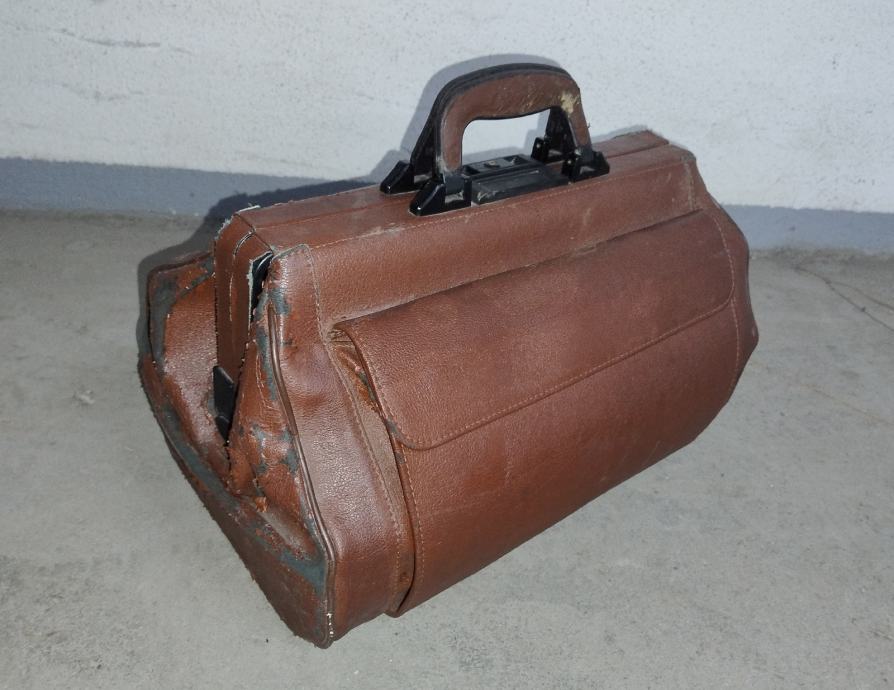 Vintage liječnička torba Rusticana, proizvođača Durasol iz 1970-tih g. Ova višenamjenska liječnička torba od ekskluzivne prave kravlje kože odnosno kože vodenog konja, je dotrajala uslijed vremena.