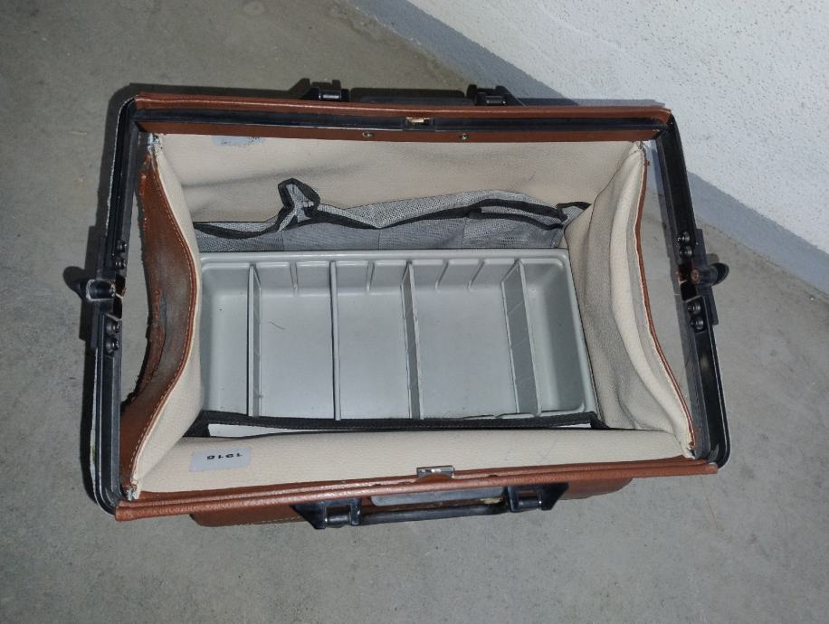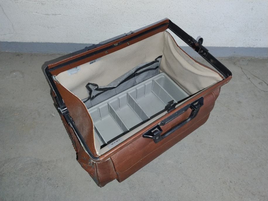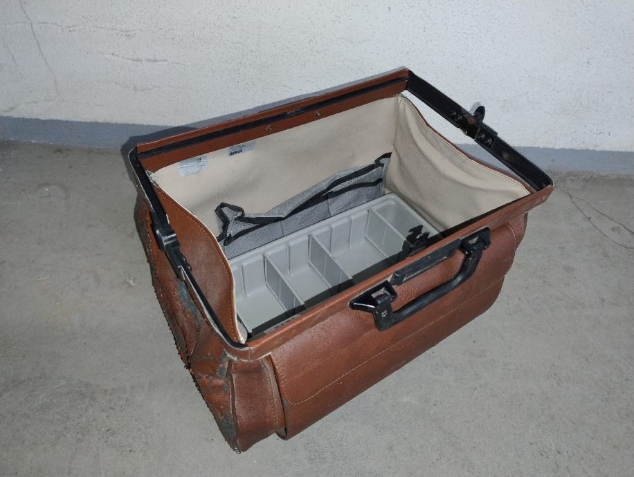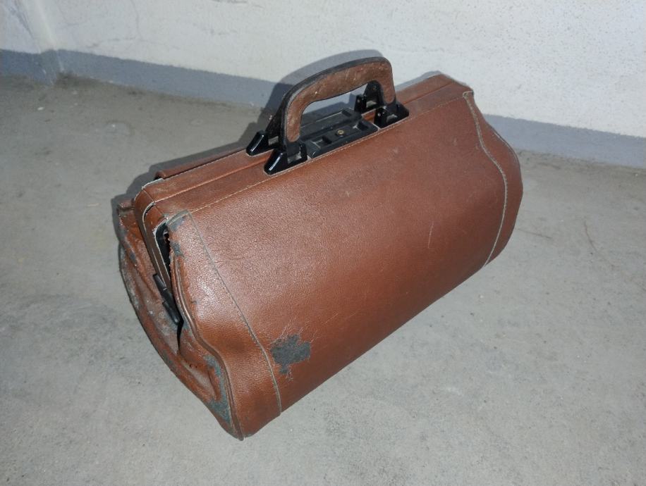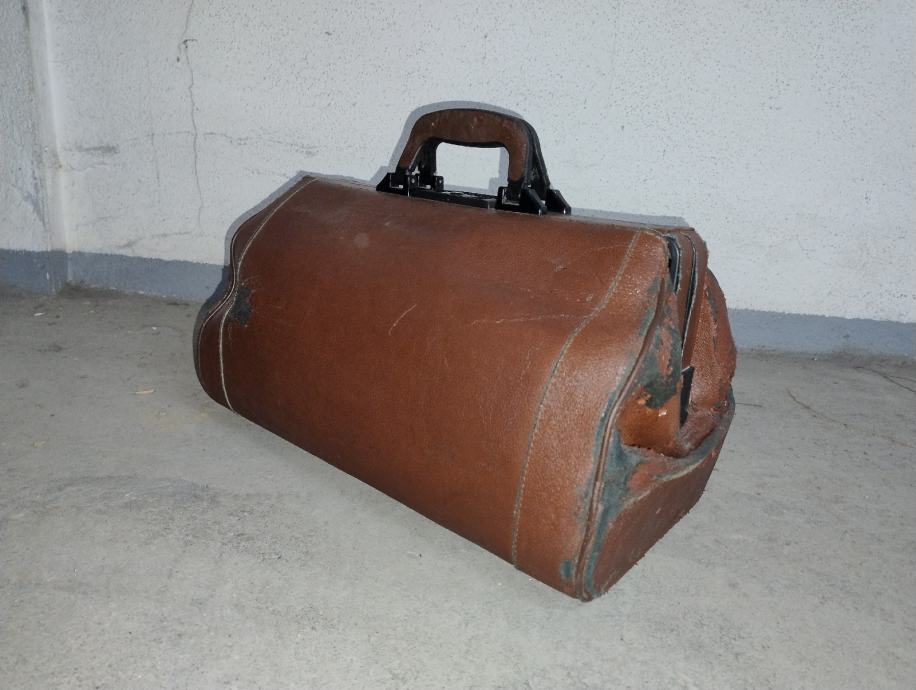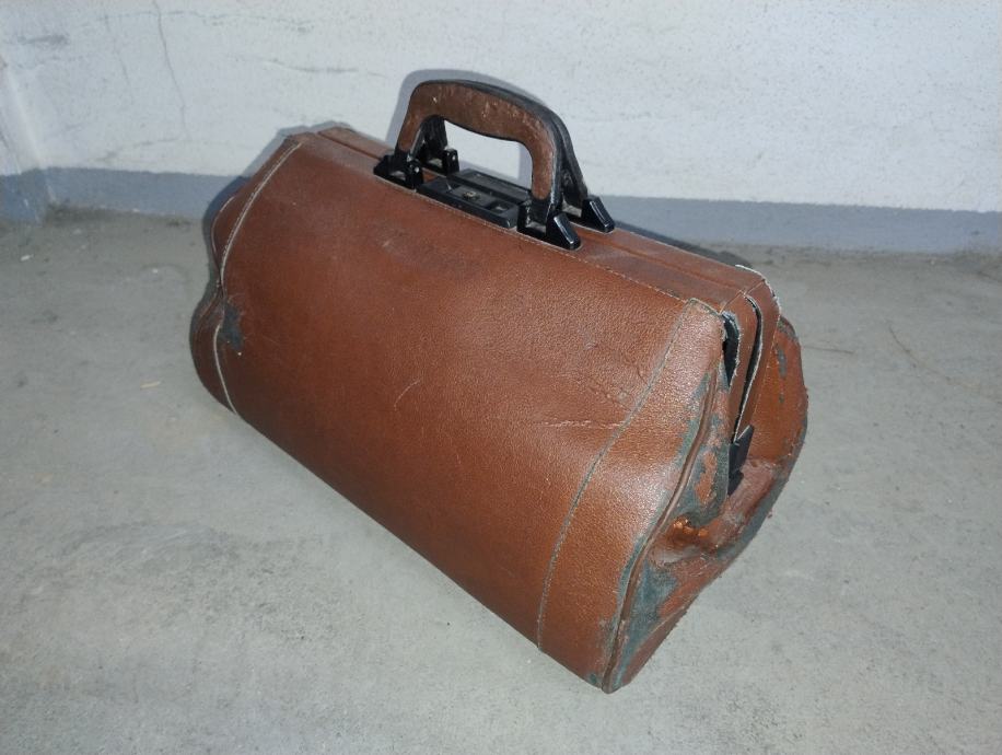 Vintage liječnička torba Rusticana, proizvođača Durasol iz 1970-tih g. Ova višenamjenska liječnička torba od ekskluzivne prave kravlje kože odnosno kože vodenog konja, je dotrajala uslijed vremena.