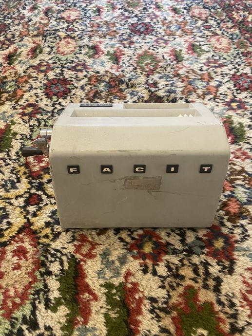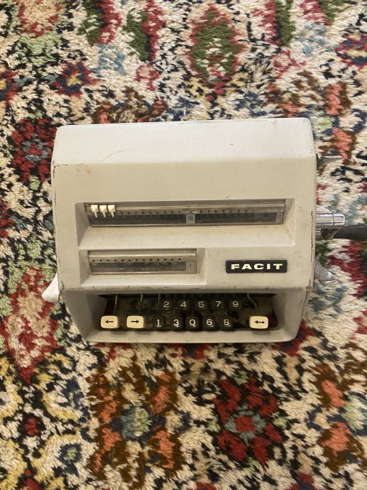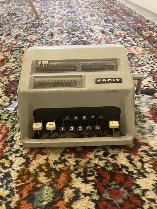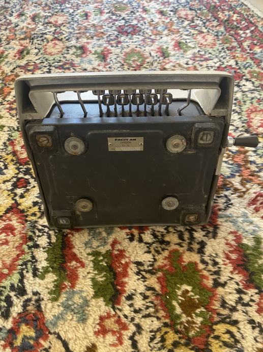 Na prodaju je originalni vintage mehanički stolni kalkulator marke FACIT, proizveden u Švedskoj sredinom 20. stoljeća. Uređaj je u potpunosti mehanički, bez elektronike, s robusnim metalnim kućištem i karakterističnom bočnom ručicom za izračun.