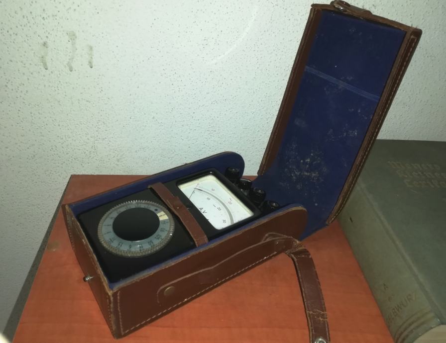 Vintage mjerni uređaj iz 1970-tih, sačuvano, u funkciji, u kožnoj futroli.