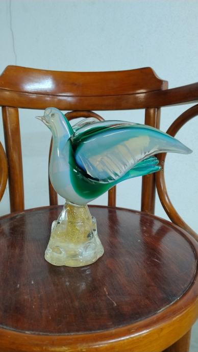 Vintage golubica od Murano stakla iz 1970-tih godina, dimenzije: visina 22,0 cm, širina 26,5 cm, dubina 19,0 cm, promjer stope 9,0 cm, zbog malog nedostatka na repu krila je navedena cijena, ostalo u besprijekornom stanju.