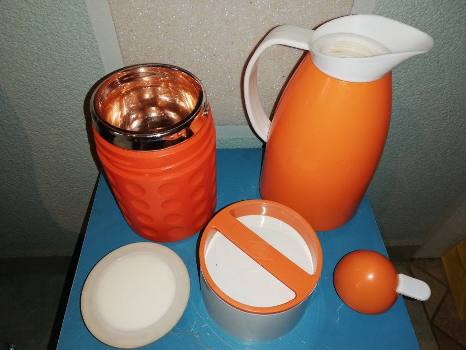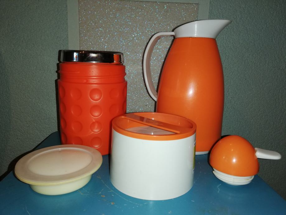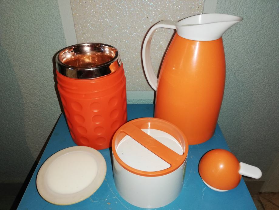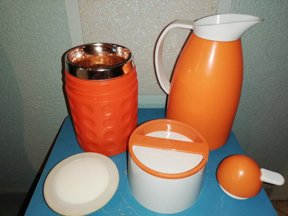 Vintage narančaste boce, prva za napitke, druga za hranu, druga nikada korištena. Stanje:sačuvano. Iz 1970-tih godina.