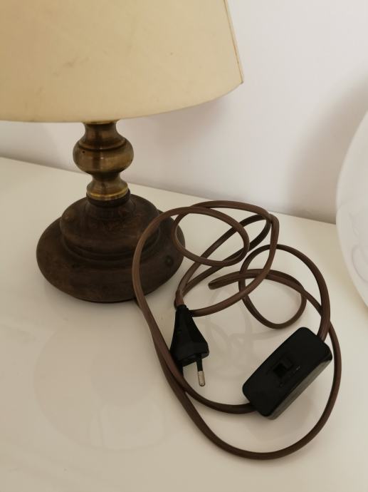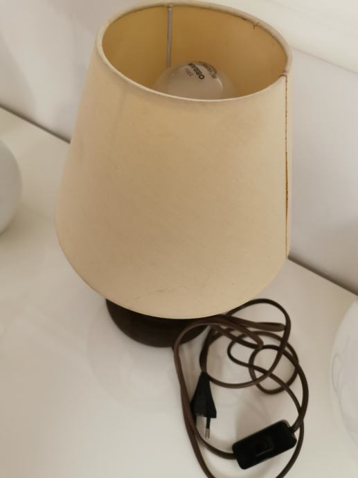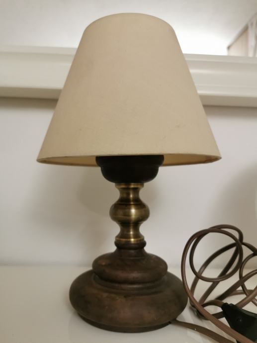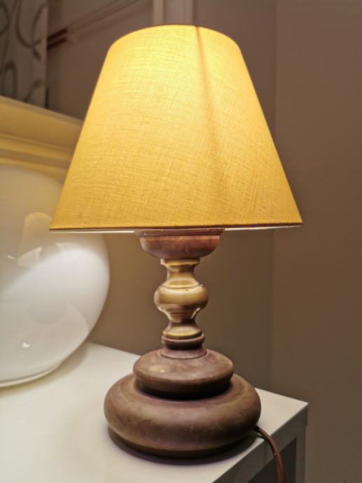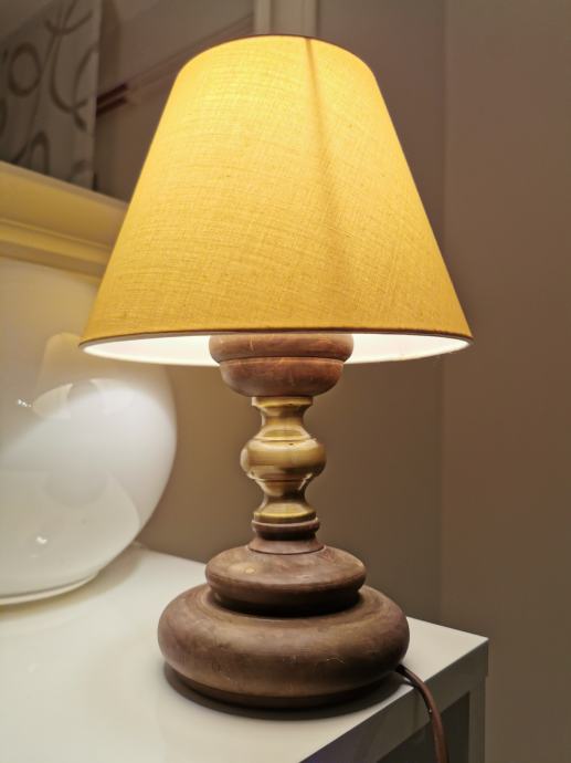 Vintage noćna lampa. Očuvana kao nova i potpuno ispravna. Treba malo poprati sjenilo. Drveno postolje, originalno stanje. Visine 32 cm. U širem dijelu sjenila promjera 22 cm. Kolekcionar kolekcionaru. Nalazi se u Kutini. Moguća rezervacija i dostava kupcu.