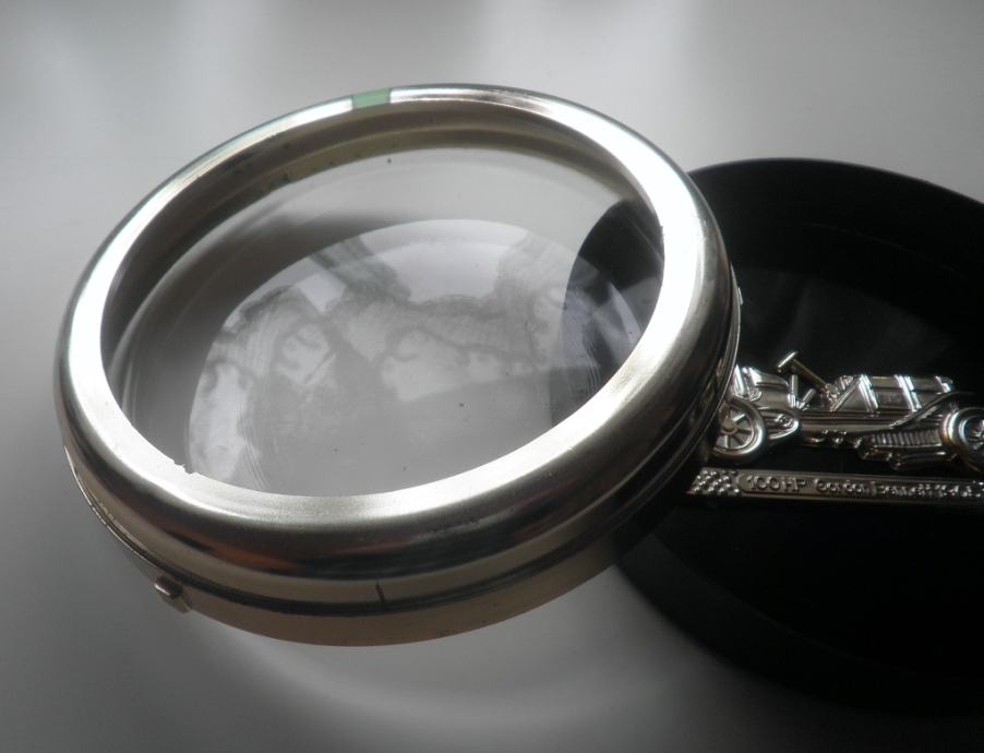Vintage oldtimer dekoracija u obliku prednjeg svjetla FIAT 100 HP Gordon Bennet , staklo - plastika, promj. 15,5 cm, Italija.