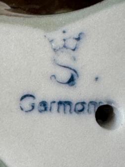 Prodajem dekorativnu porculansku figuru sove s oznakom “Germany” i prepoznatljivim žigom krune sa slovom S, koji se pripisuje manufakturi Carl Scheidig (Gräfenthal, Njemačka).