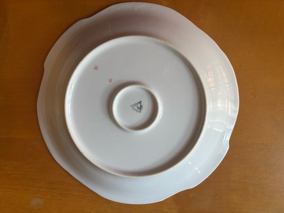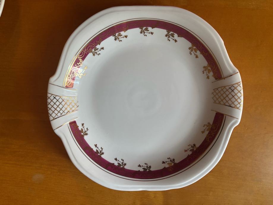 Očuvan vintage pozlaćeni porculanski pladanj za kolače sa žigom.