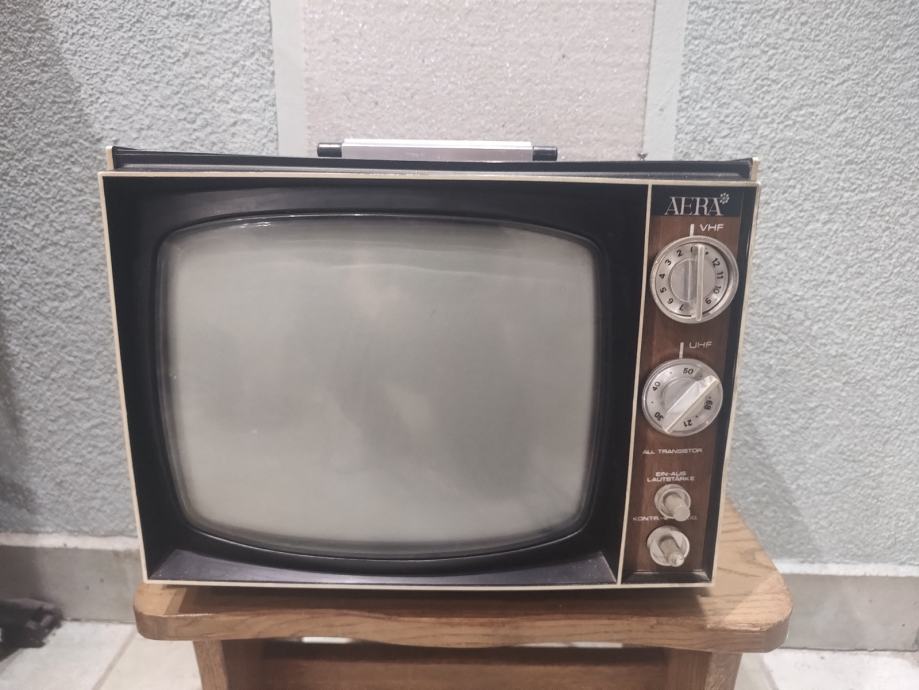 Vintage c/b portable Tv Aera, model 11T11S, izrađen u Japanu krajem 1970.-tih g., za evropsko tržište, ponajprije Njemačku i Austriju.