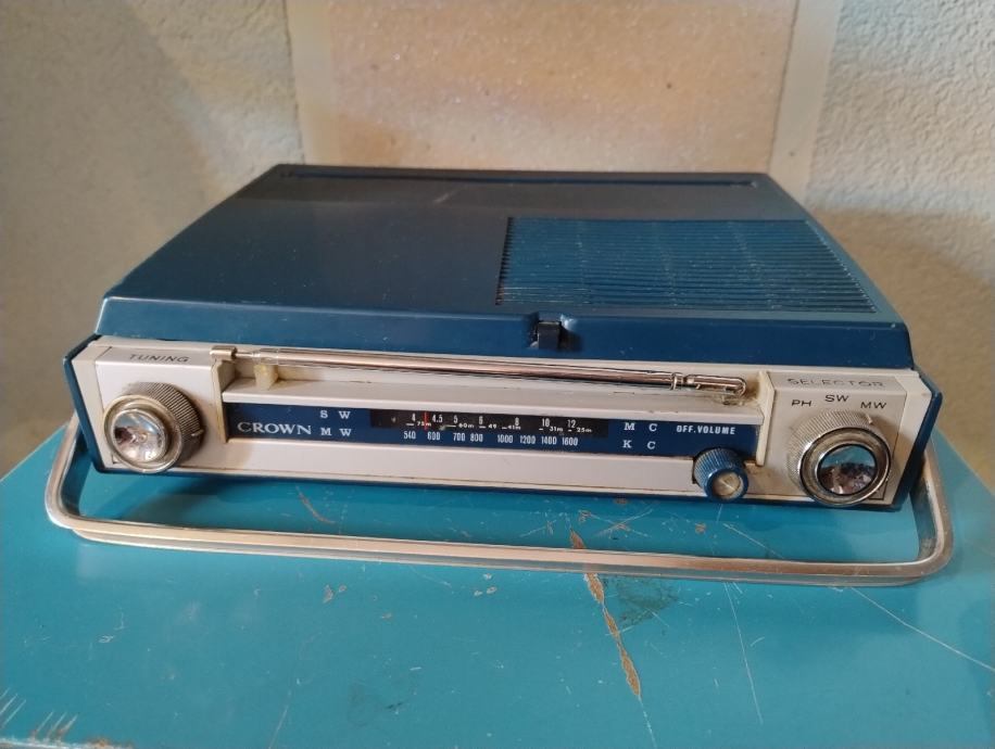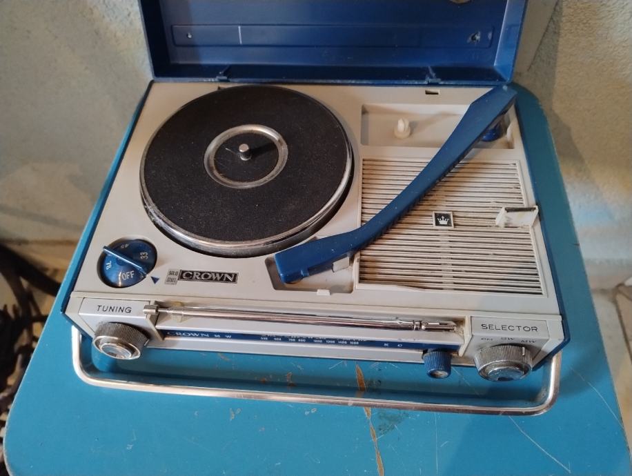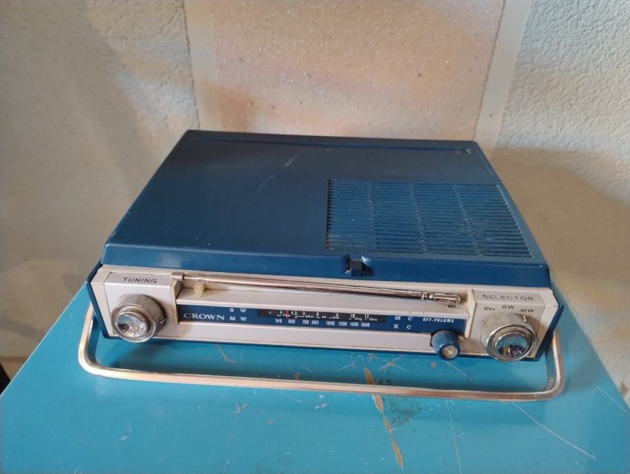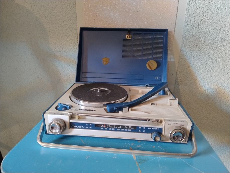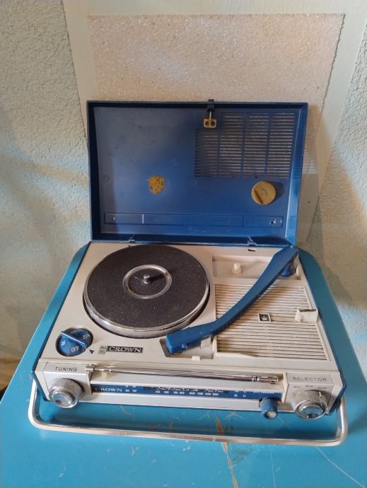 Vintage prijenosni portabl gramofon radio , proizvođača Crown iz 1970tih. Stanje: u upotrebi.