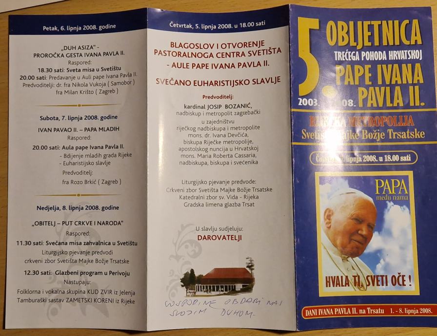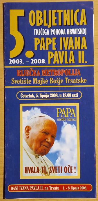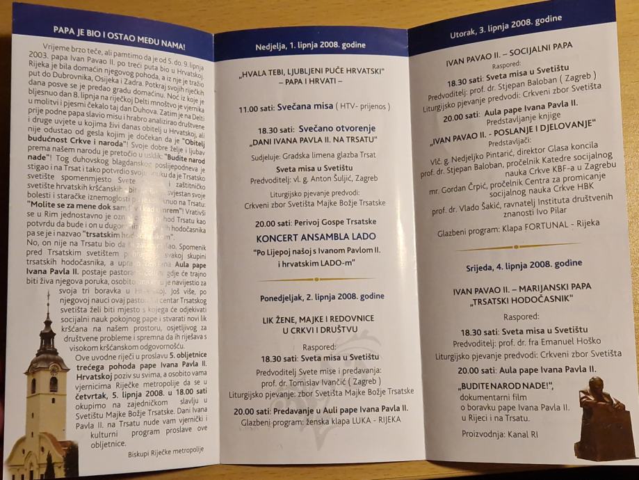 Vintage prospekt 3. Pohod Pape Hrvatskoj Riječka metropolija Rijeka