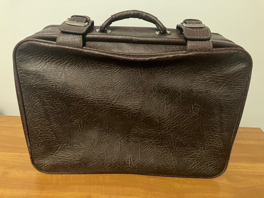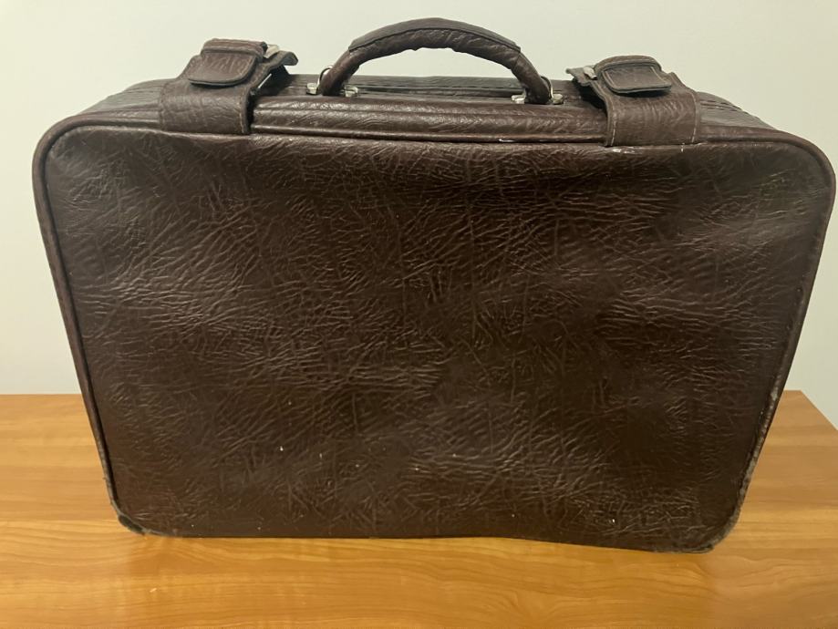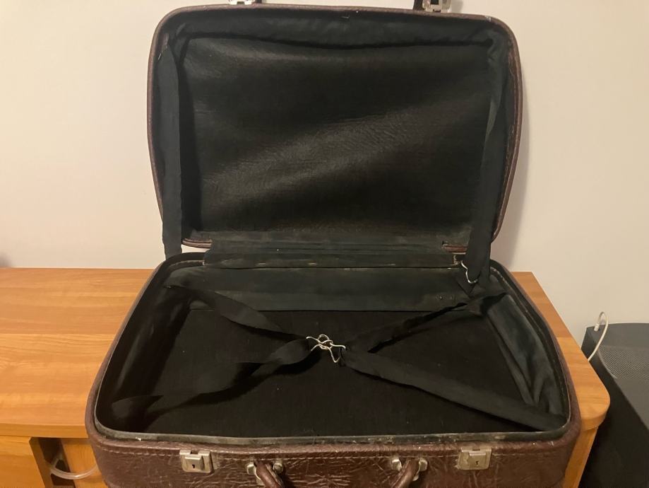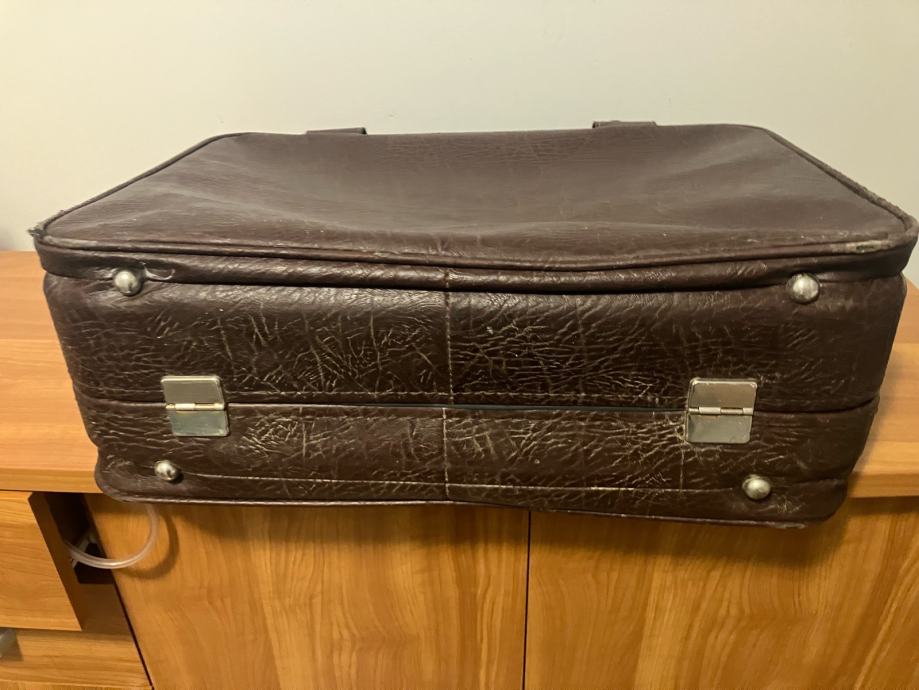 Vintage putni kofer od umjetne kože. 6 fotografija je u oglasu. Dimenzije su 57x40x17 cm.