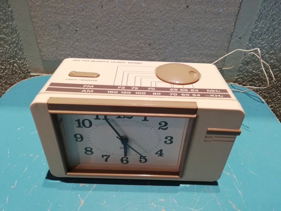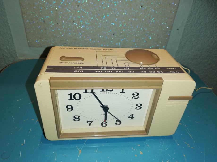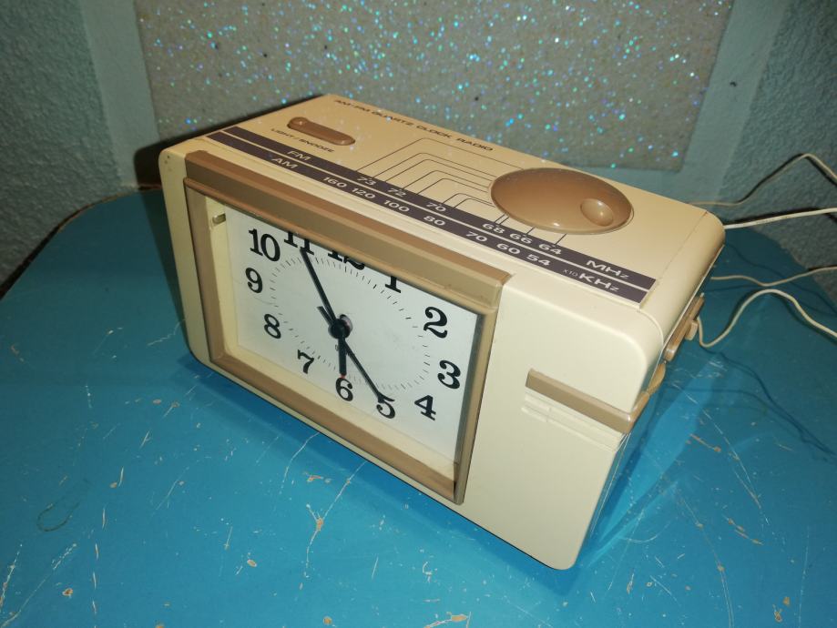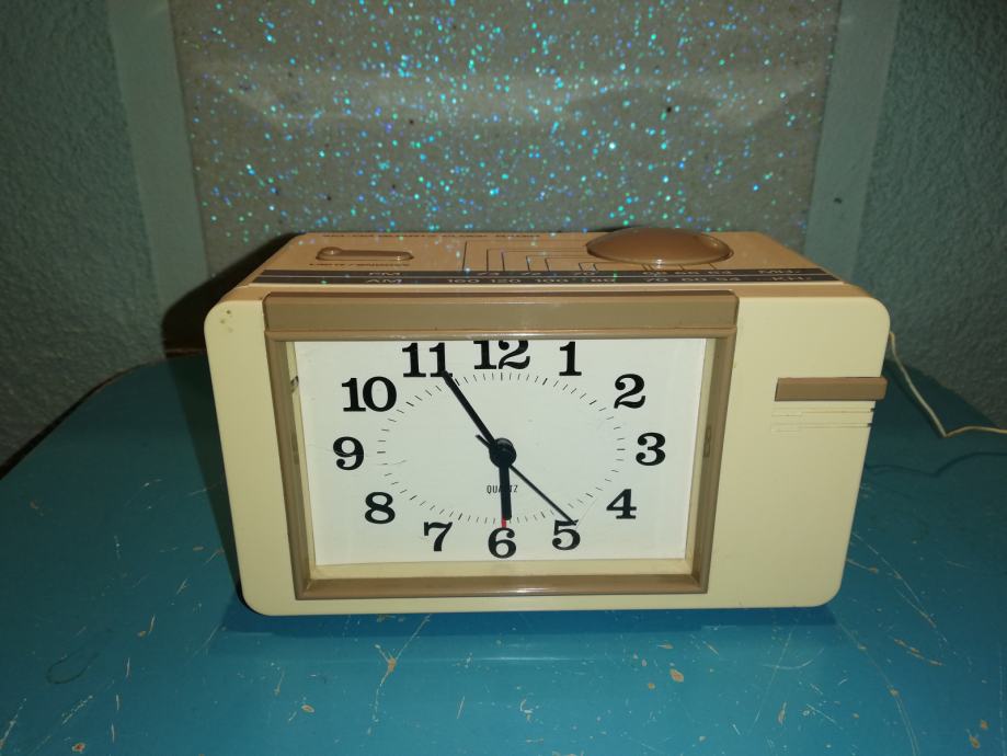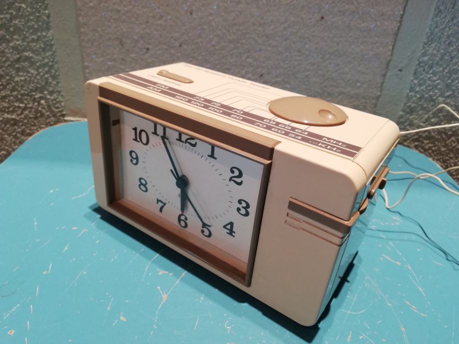 Model sličan modelu radio sat B-100 - City Electronics LTD. Oblik:Stolni model sa satom ((Alarm-) Radio sat).Stil:Space age.