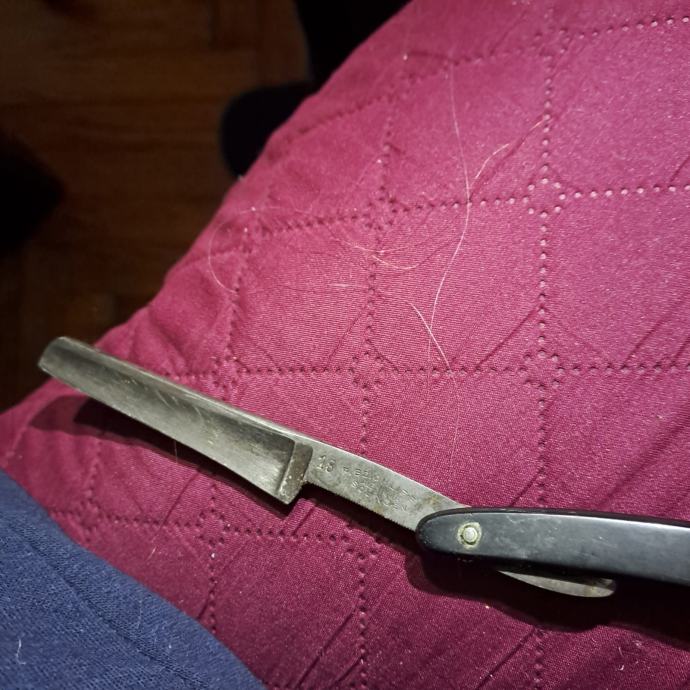Prodajem originalnu vintage ravnu britvu (straight razor) renomiranog proizvođača R. & B. Reddolm, izrađenu u Solingenu, Njemačka – poznatom po vrhunskoj kvaliteti oštrica.