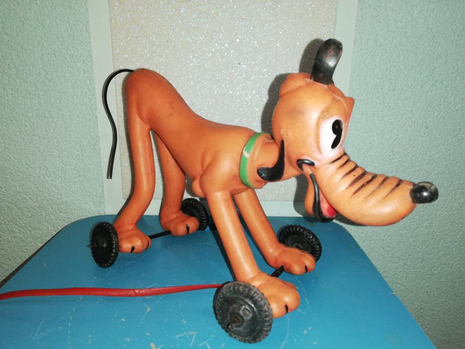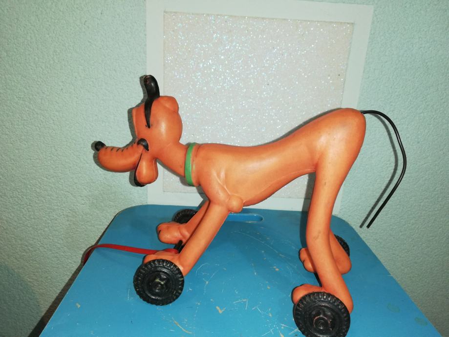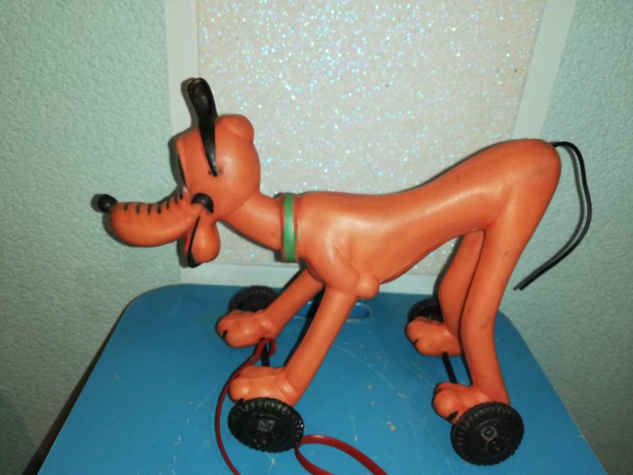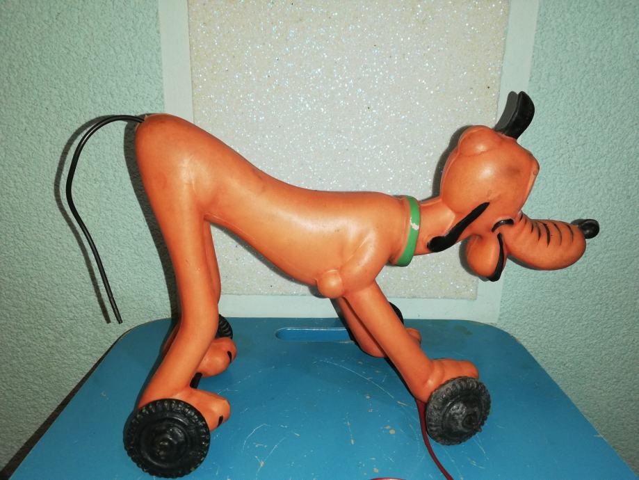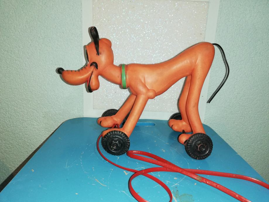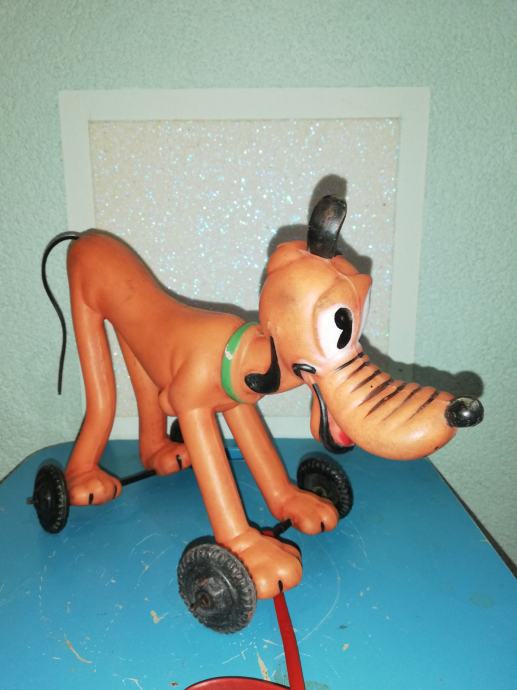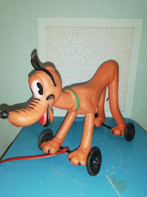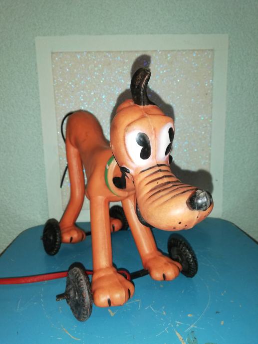 Pluton na točkovima i sa uzicom, rijetka i odlično očuvana gumena igračka izrađena u Biserka, Zagreb po licenci Walta Disneya.