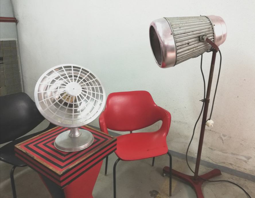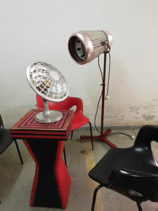 Vintage stolna grijalica iz 1950-ih godina, industrijski dizajn, materijal: aluminij.