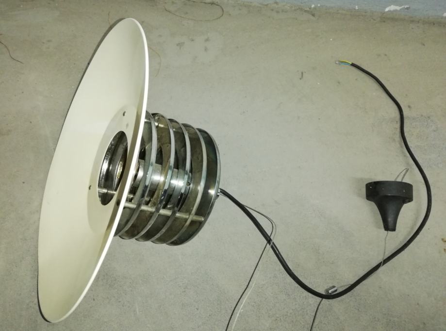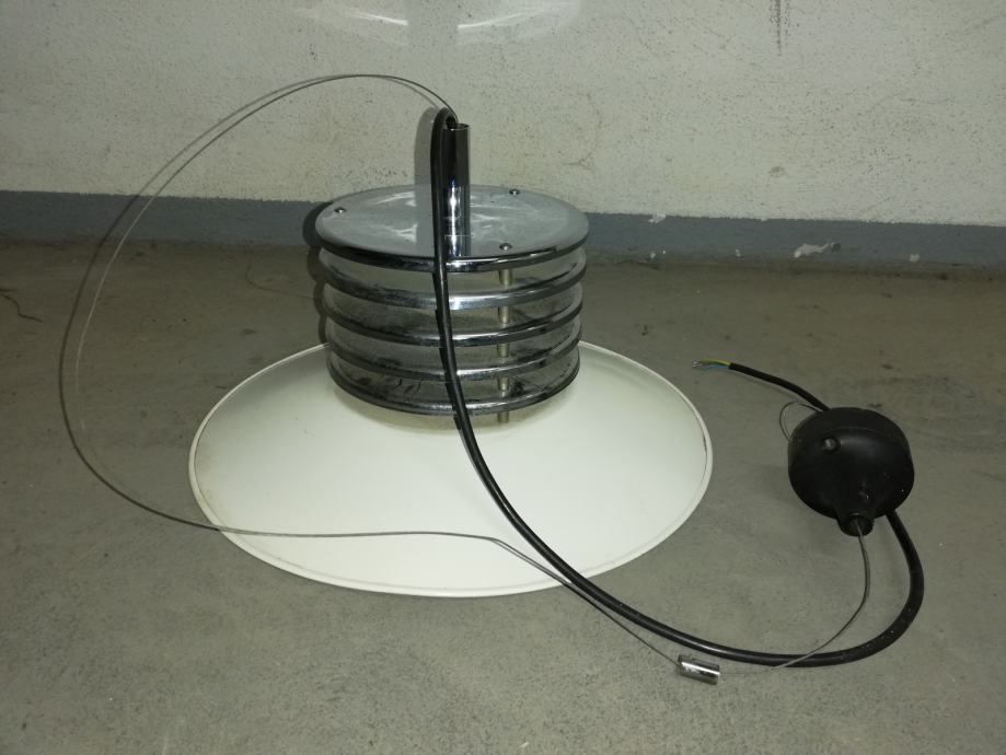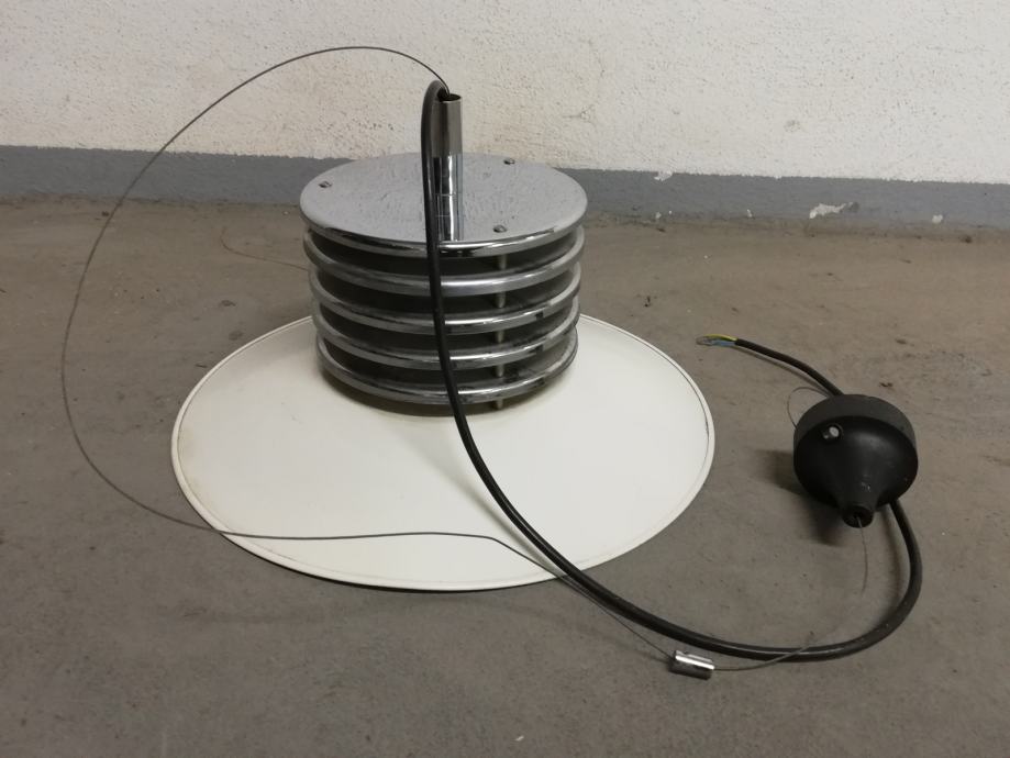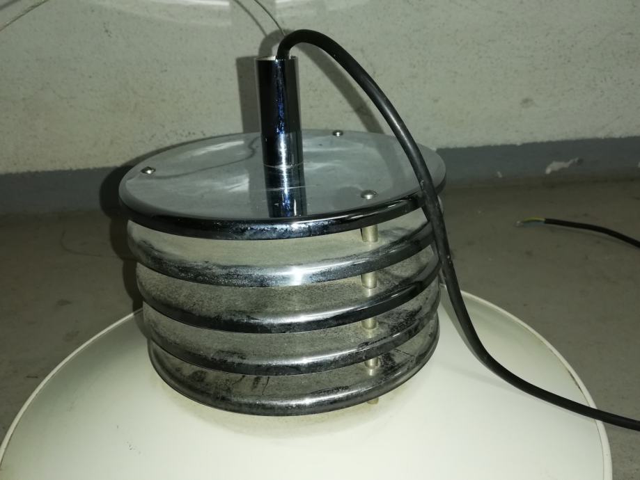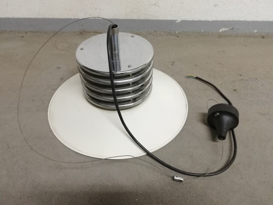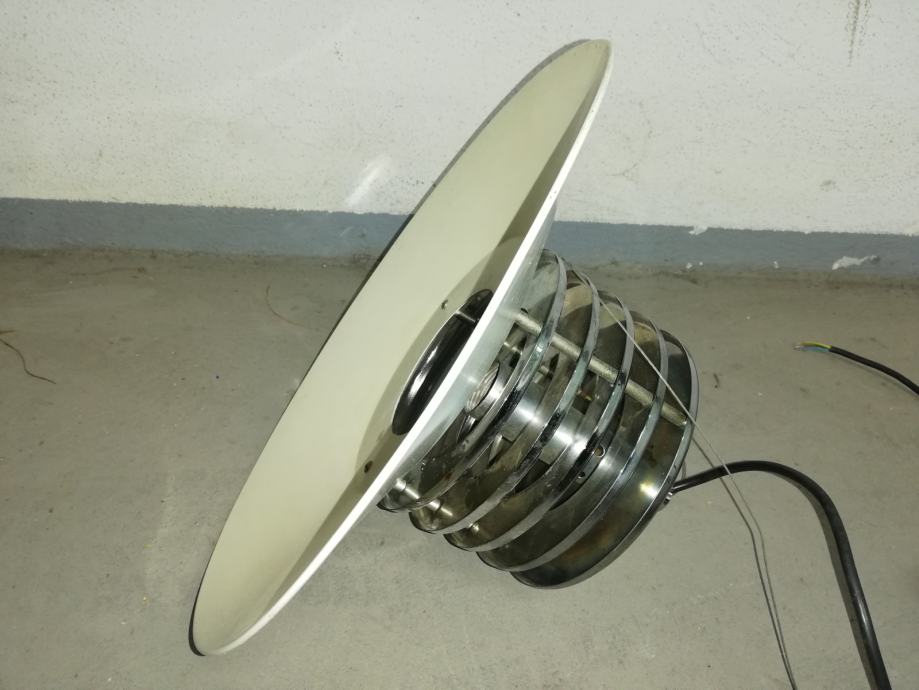 Vintage stropna svjetiljka, space age, iz 1970-tih godina, u funkciji, materijal metal, kromirani metal.
