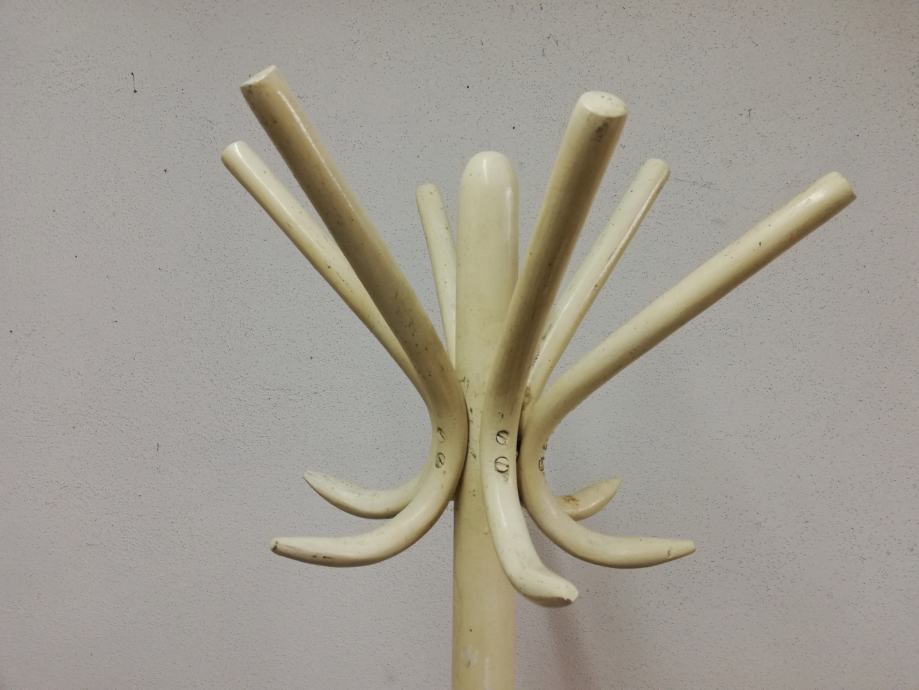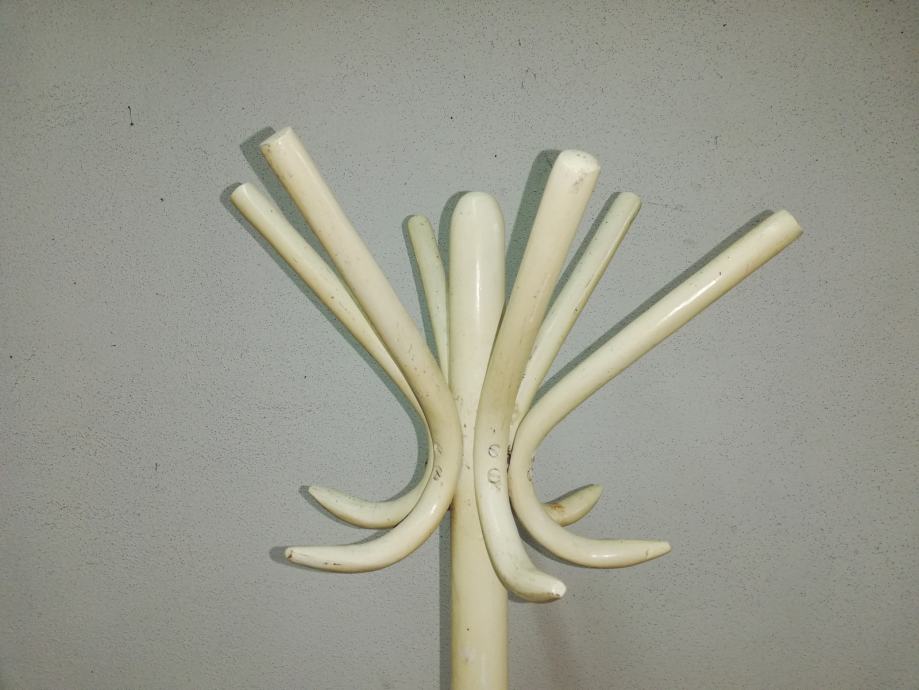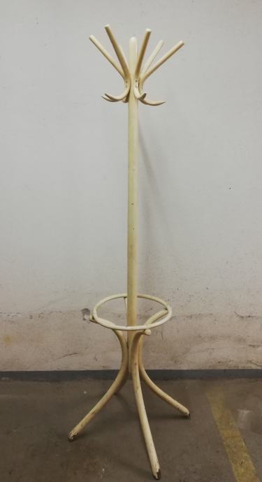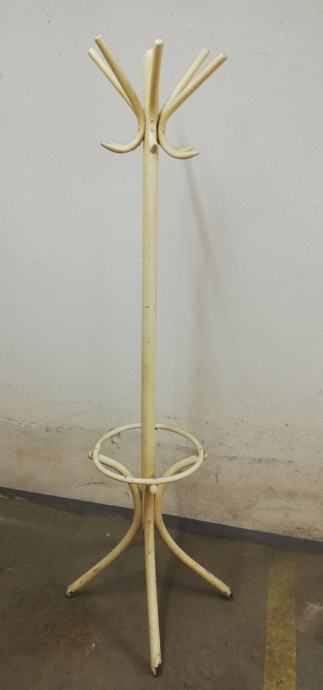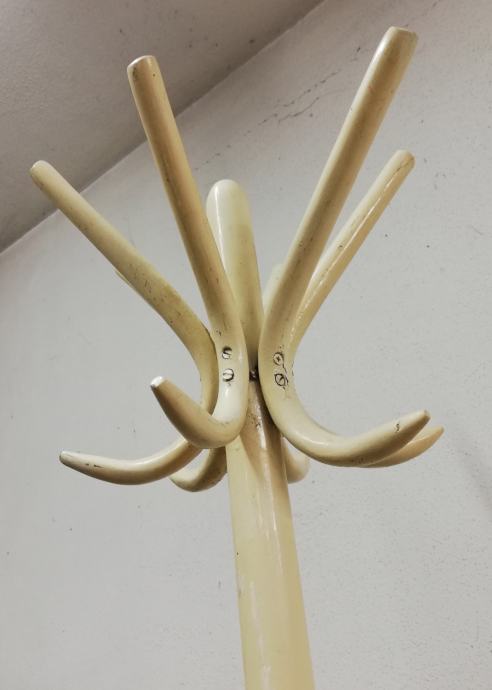 Vintage podna vješalica, robusna, od bukovog drveta, premazana uljnom bojom, nijansa:slonova kost. Stanje:Sačuvano, iz kolekcije.