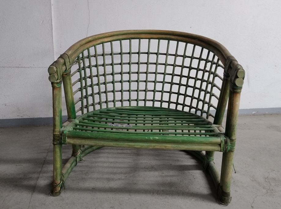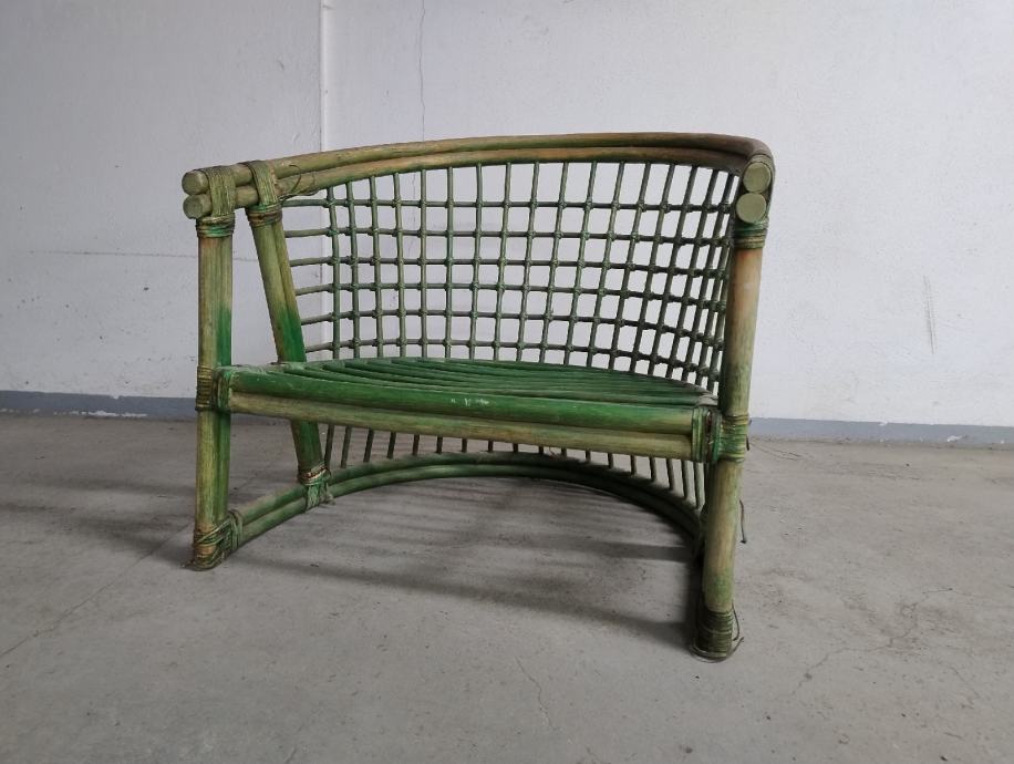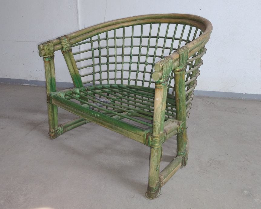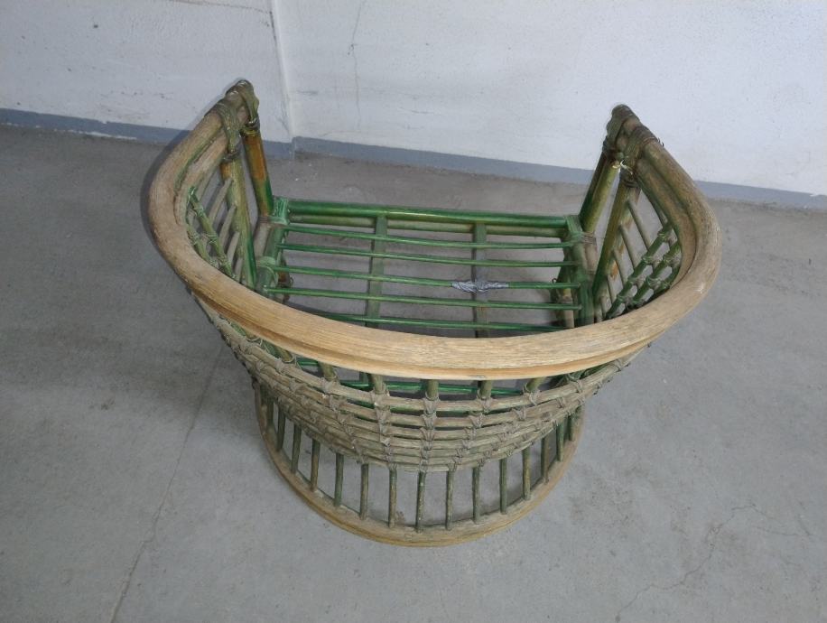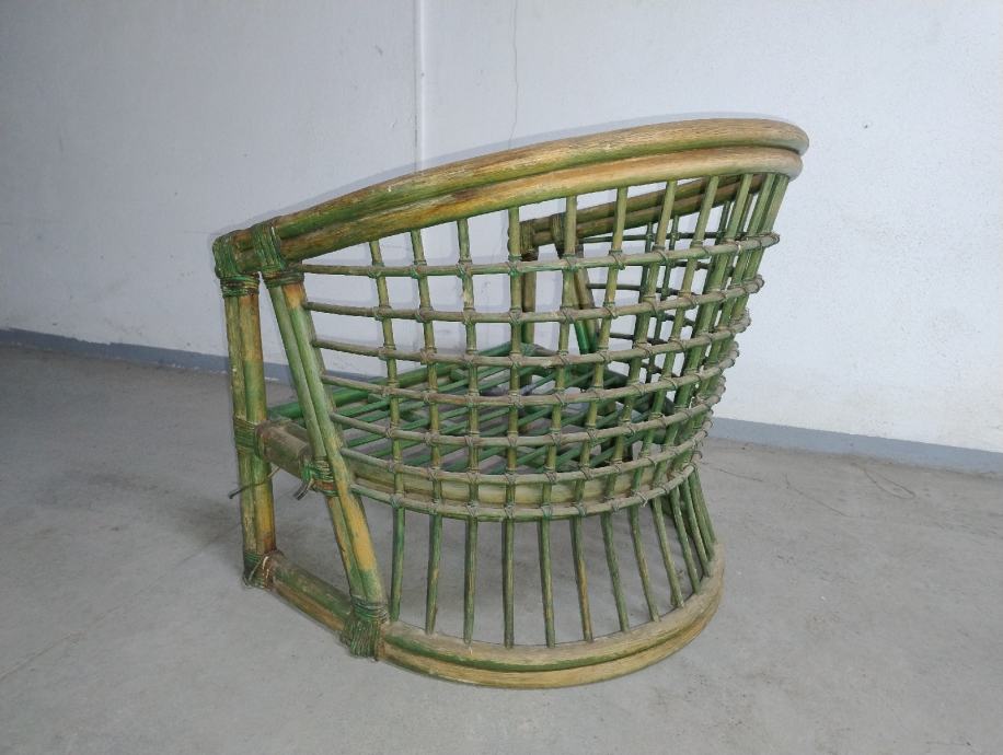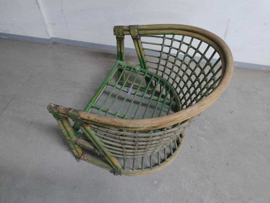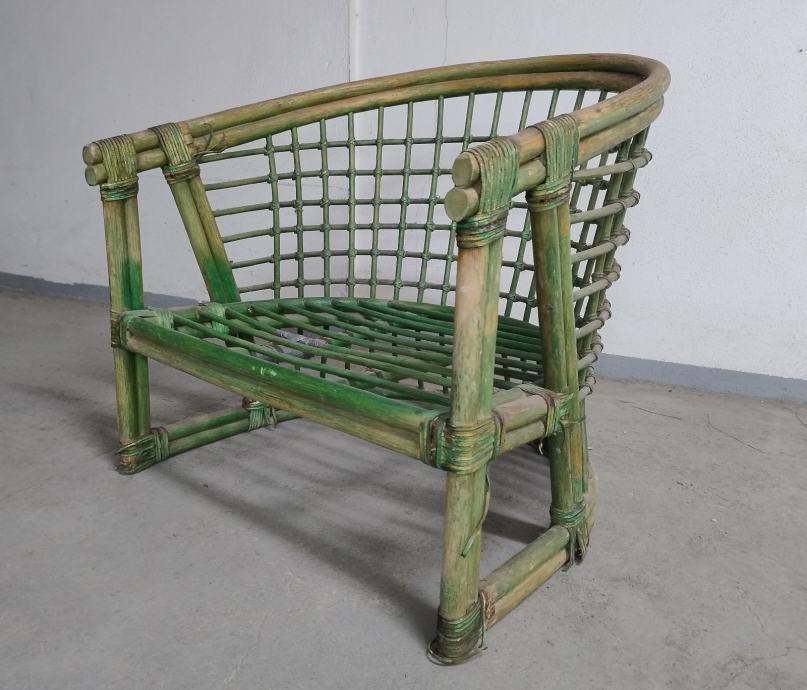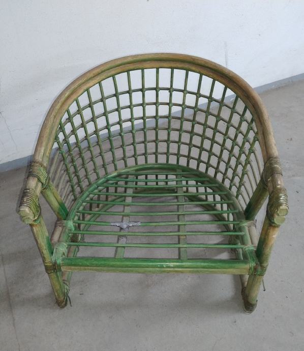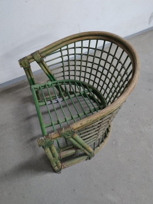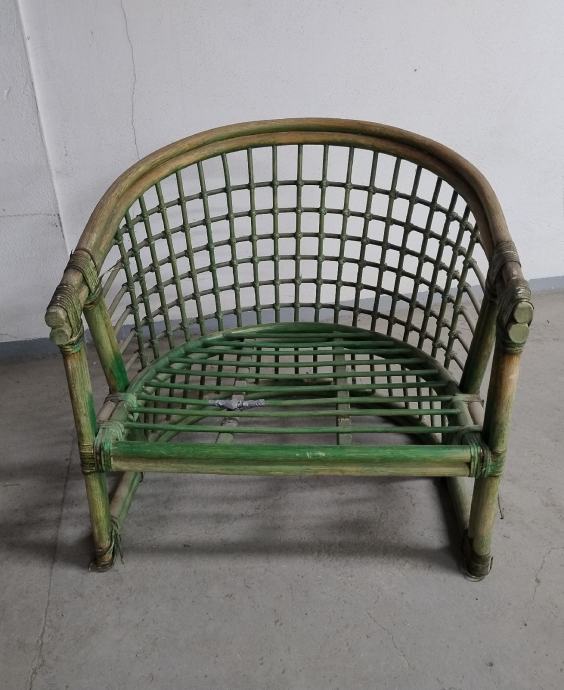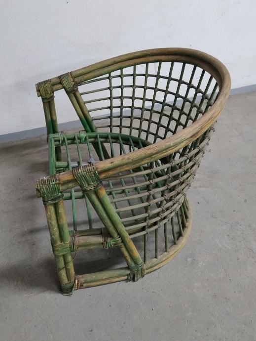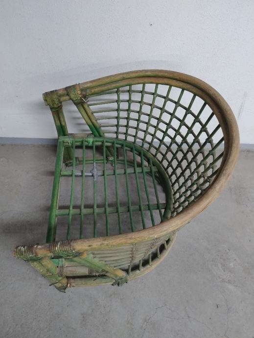 Vintage vrtna neobična stolica iz 1970-tih g. Dimenzije širina 73,0 cm, dubina 72,0 cm, visina sjedišta 31,0 cm, ukupna visina sa naslonom 79,0 cm , dubina sjedišta 60,0 cm, širina sjedišta 70,0 cm .Sačuvano