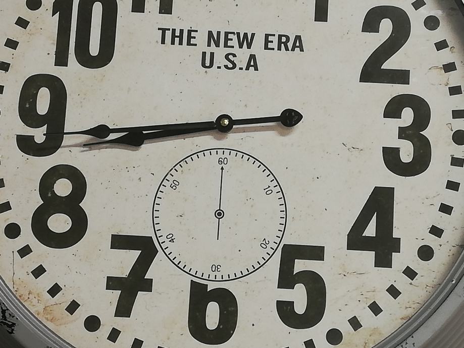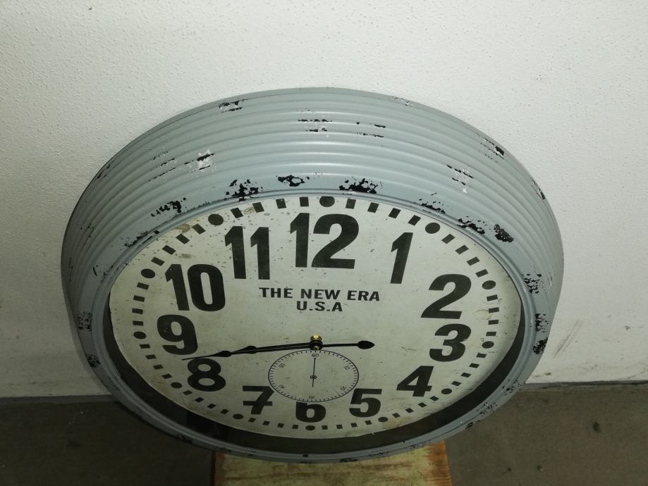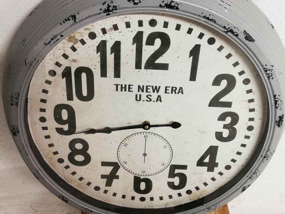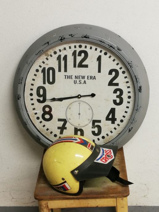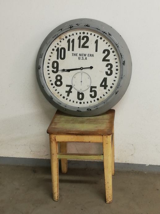 Vintage zidni američki sat promjera 59,0 cm. Sat je nekada imao mehanički mehanizam, ali je unište, tako da je zamijenjen sa baterijskim mehanizmom. Sat je u funkciji. Dimenzije :promjer 59,0 cm, unutrašnji promjer sata: 47,0 cm, debljina sata: 9,0 cm.