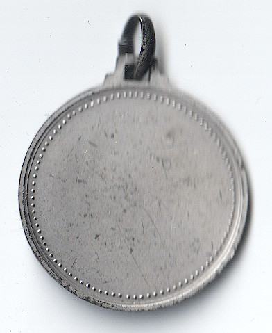 Stražnja strana glatka, bez gravure, s ukrasnim točkastim obrubom. Očuvan originalni prsten za nošenje.