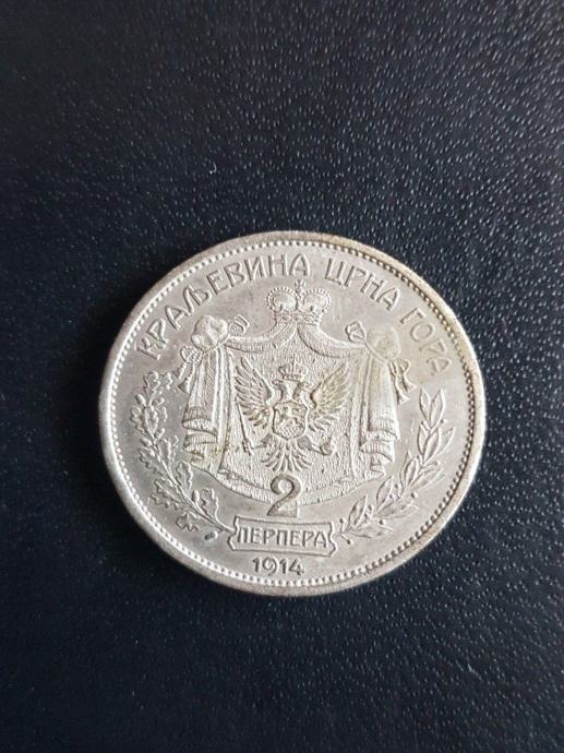 2 PERPER 1914 NICOLA I NIKOLA I CRNA GORA- MONTENEGRO SREBRO/SILBER/ SILVER