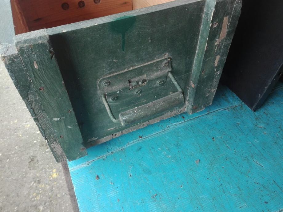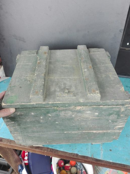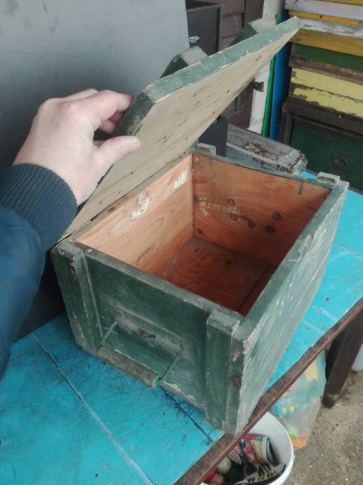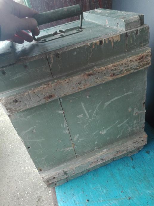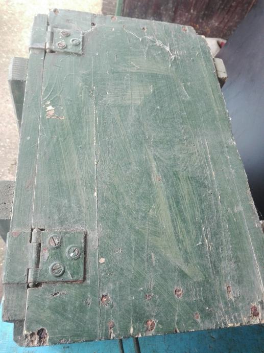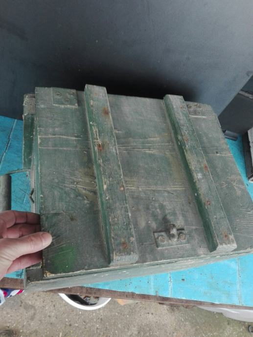 Vojni sanduk. Nigdje nije trulo ili oštećeno. Na sms nemogu odgovoriti, najbolje bi bilo da me nazovete 099 687 5657 ili pošaljete poruku preko Njuškala.