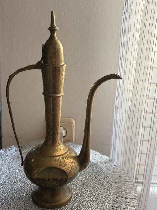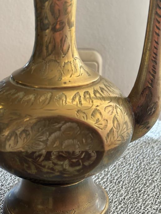 Prodajem stari mjedeni vrč s bogatim reljefnim motivom ruže