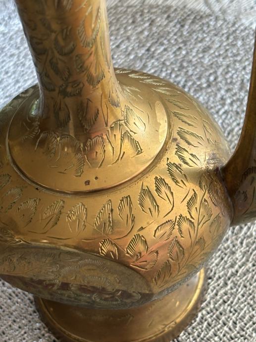 Elegantni ukrasni vrč izrađen od kvalitetnog mesinga (mjedi), s prekrasno izrađenim i detaljnim floralnim motivom ruže koji mu daje poseban vintage šarm.