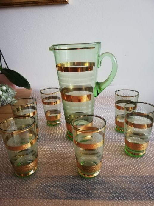 Prodajem starinski vrč sa šest čaša u pozlati. Nikada korišteno /ukras u vitrini/.